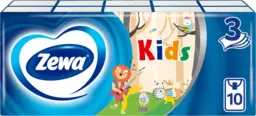 Платочки бумажные носовые Zewa Kids детские 3 слоя, 10 шт