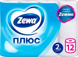 Туалетная бумага Zewa Плюс без аромата, 2 слоя, 12 рулонов