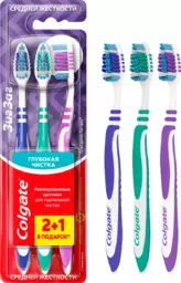 Зубная щетка Colgate Зиг заг многофункциональная, средней жесткости, промоупаковка 2+1