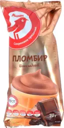 Мороженое молочное Ашан Красная птица Пломбир шоколадный в вафельном стаканчике Гост Бзмж, 70 г