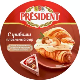 Сыр плавленый President с грибами 45% треугольники 8 долек Бзмж, 140 г