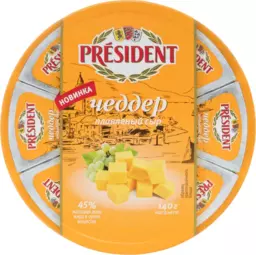 Сыр плавленый Чеддер President треугольники Бзмж, 140 г