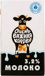 Молоко коровье Очень Важная Корова ультрапастеризованное стерилизованное 3.2% Бзмж, 1 л