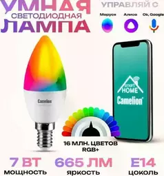 Умная лампочка Camelion Lsh7/c35/rgbcw/e14/wifi