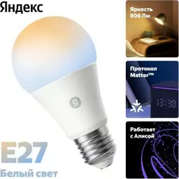 Умная лампочка Яндекс Е27, 806 Лм, белая, работает с Алисой, Matter over Wi-fi