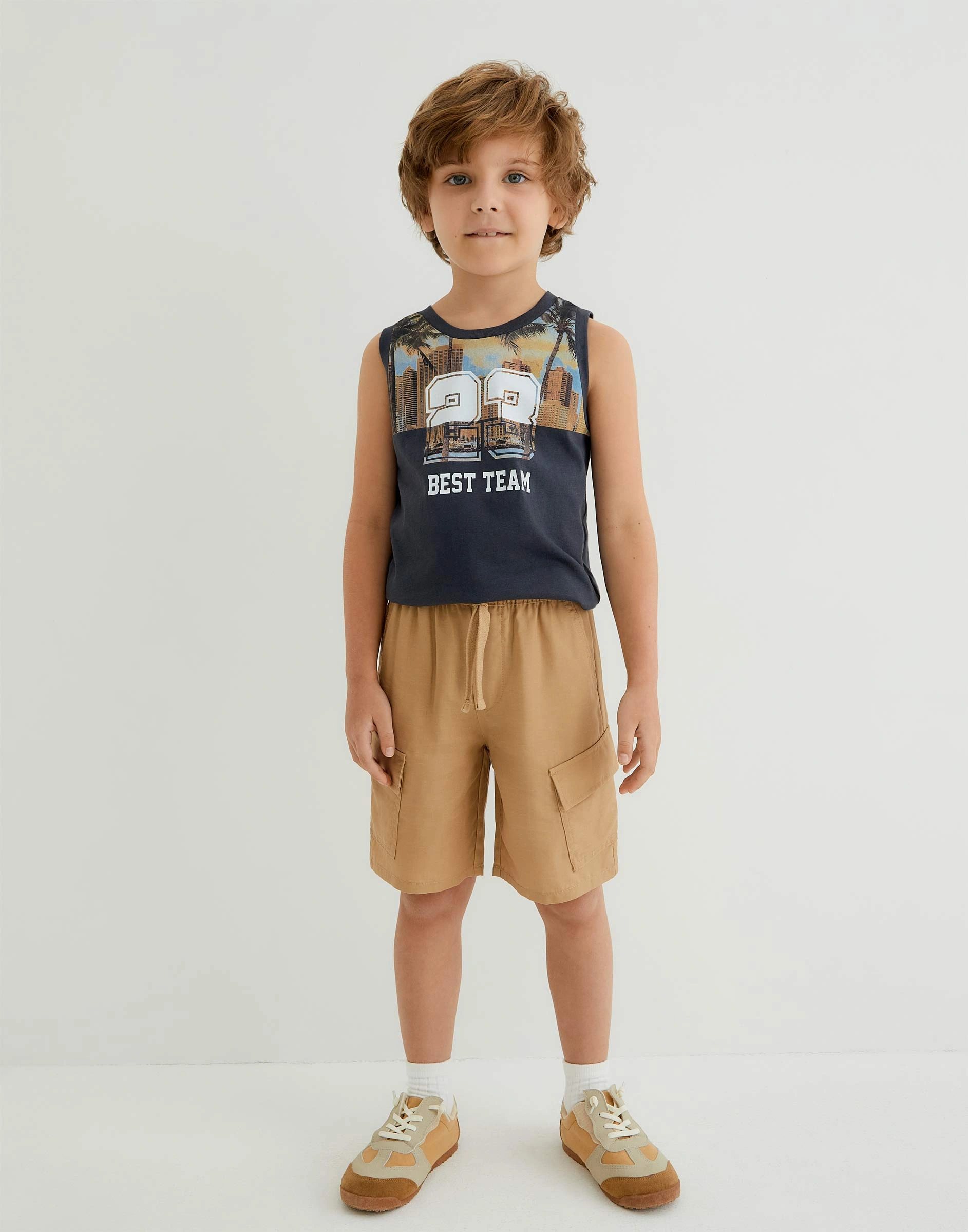 Горчичные шорты Cargo из лиоцелла со льном для мальчика Bsh007983-2