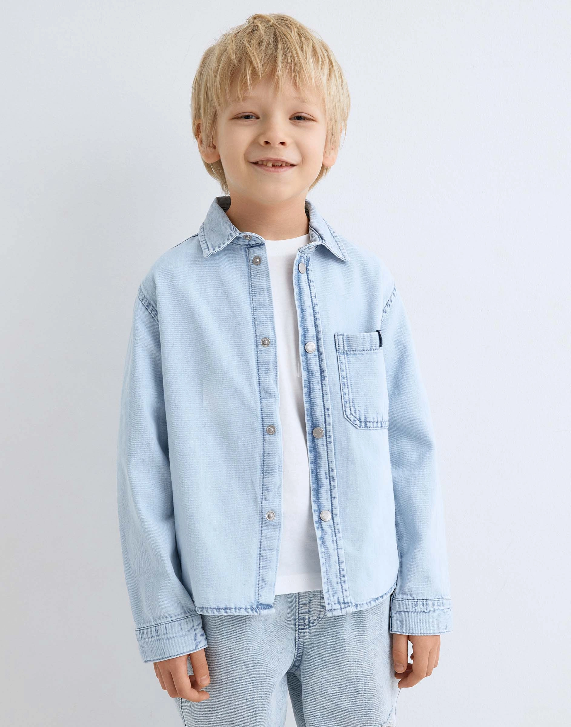 Джинсовая рубашка с лейблом и принтом для мальчика Bwt001977-1