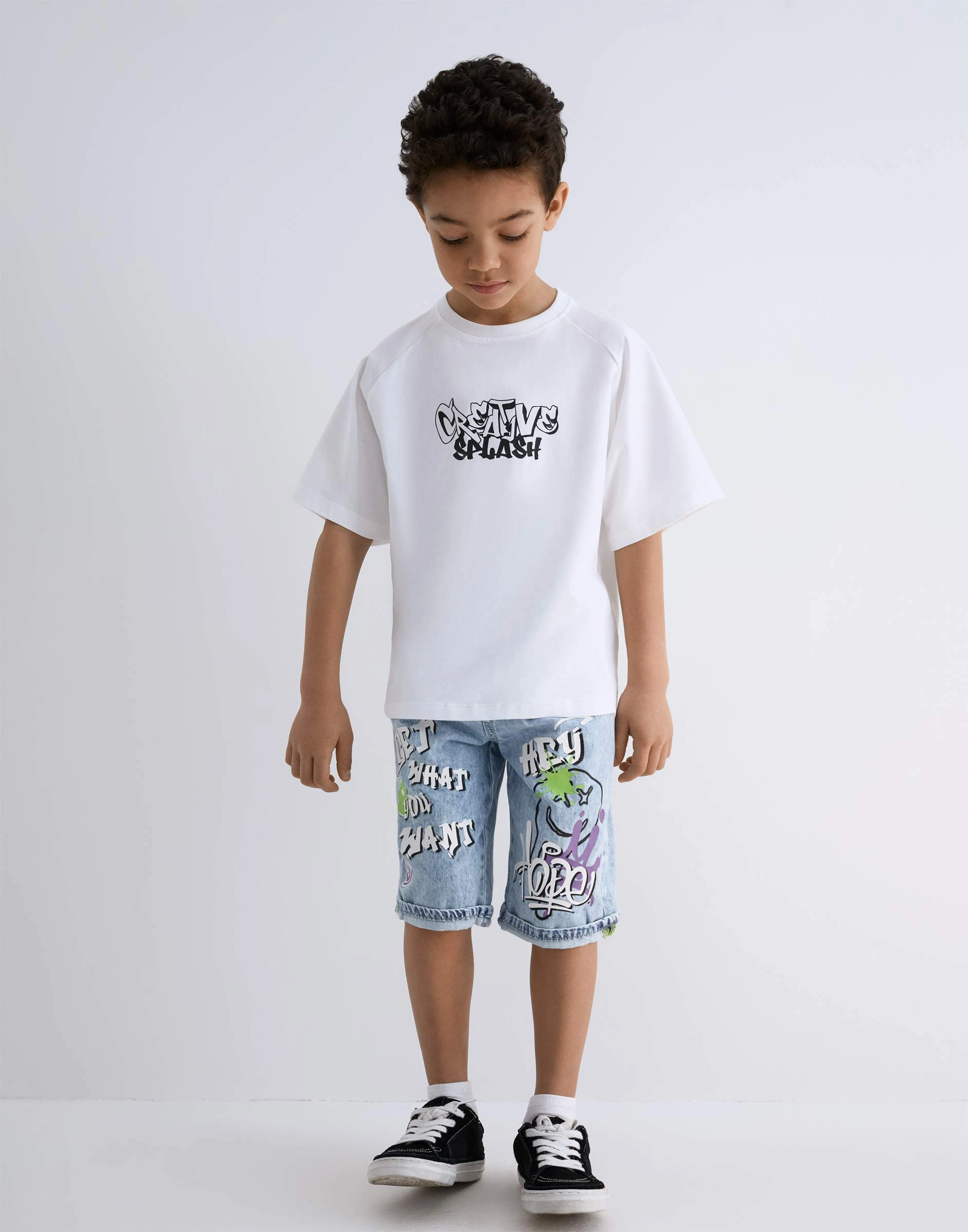Джинсовые шорты Comfort с принтом и подворотами для мальчика Bsh008038-1
