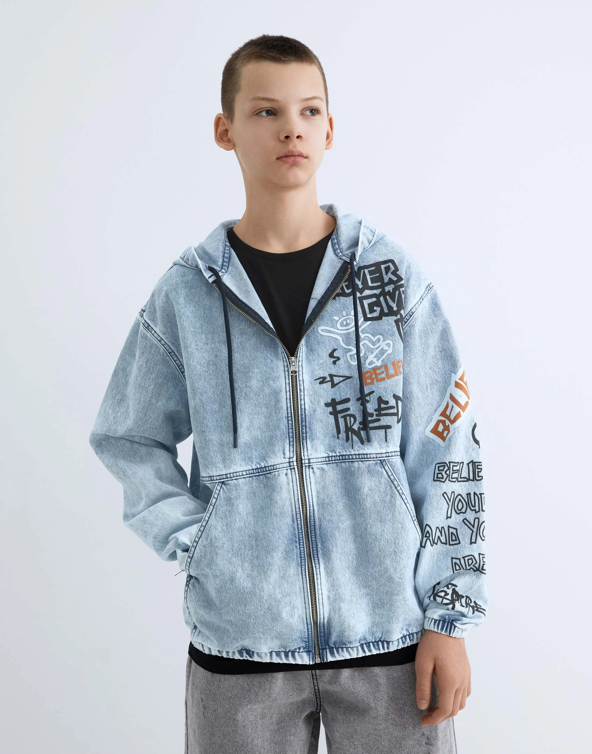 Джинсовый жакет (куртка) oversize с капюшоном Bjc002833-1