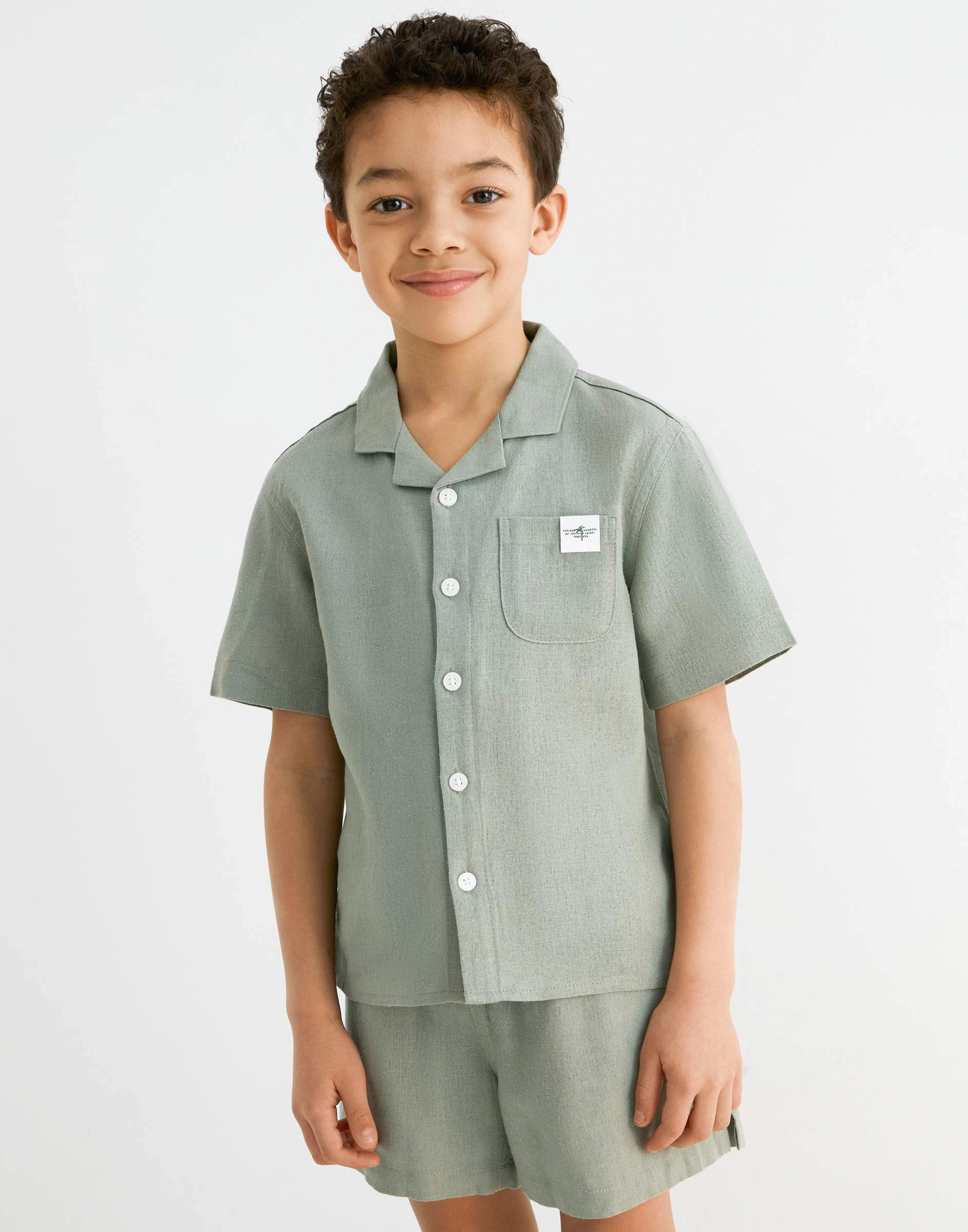 Оливковая рубашка со льном и этикеткой для мальчика Bwt001920-1