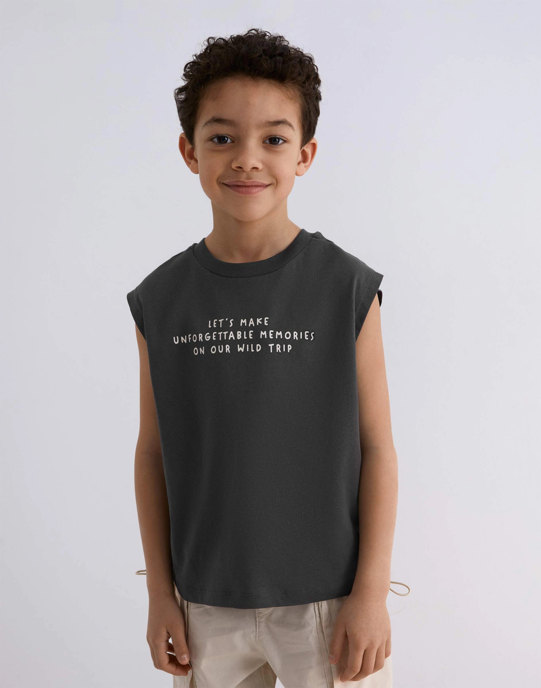 Тёмно-серая майка с принтом для мальчика Btn002441-1