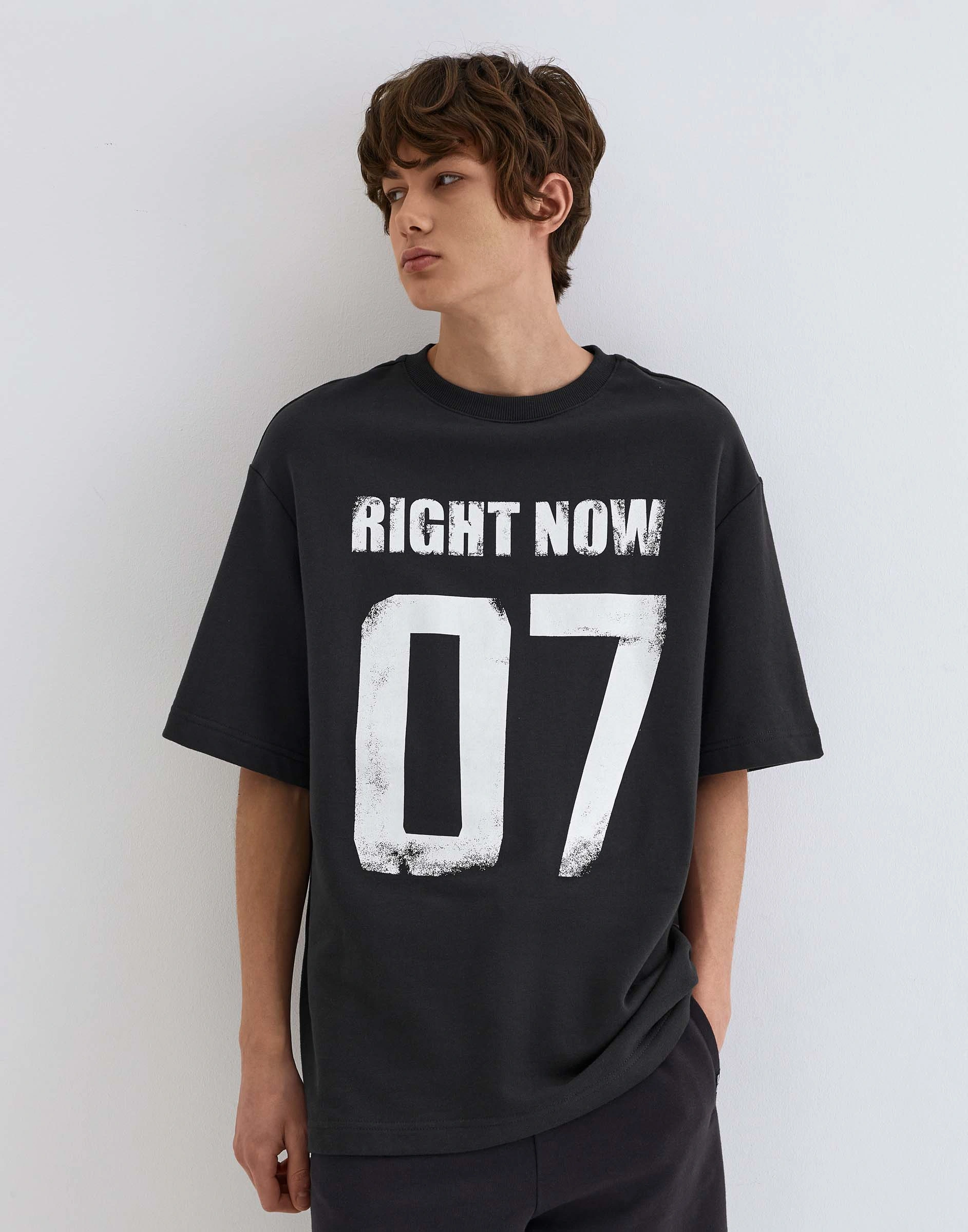 Тёмно-серый пуловер oversize с коротким рукавом и принтом Bac014008-2
