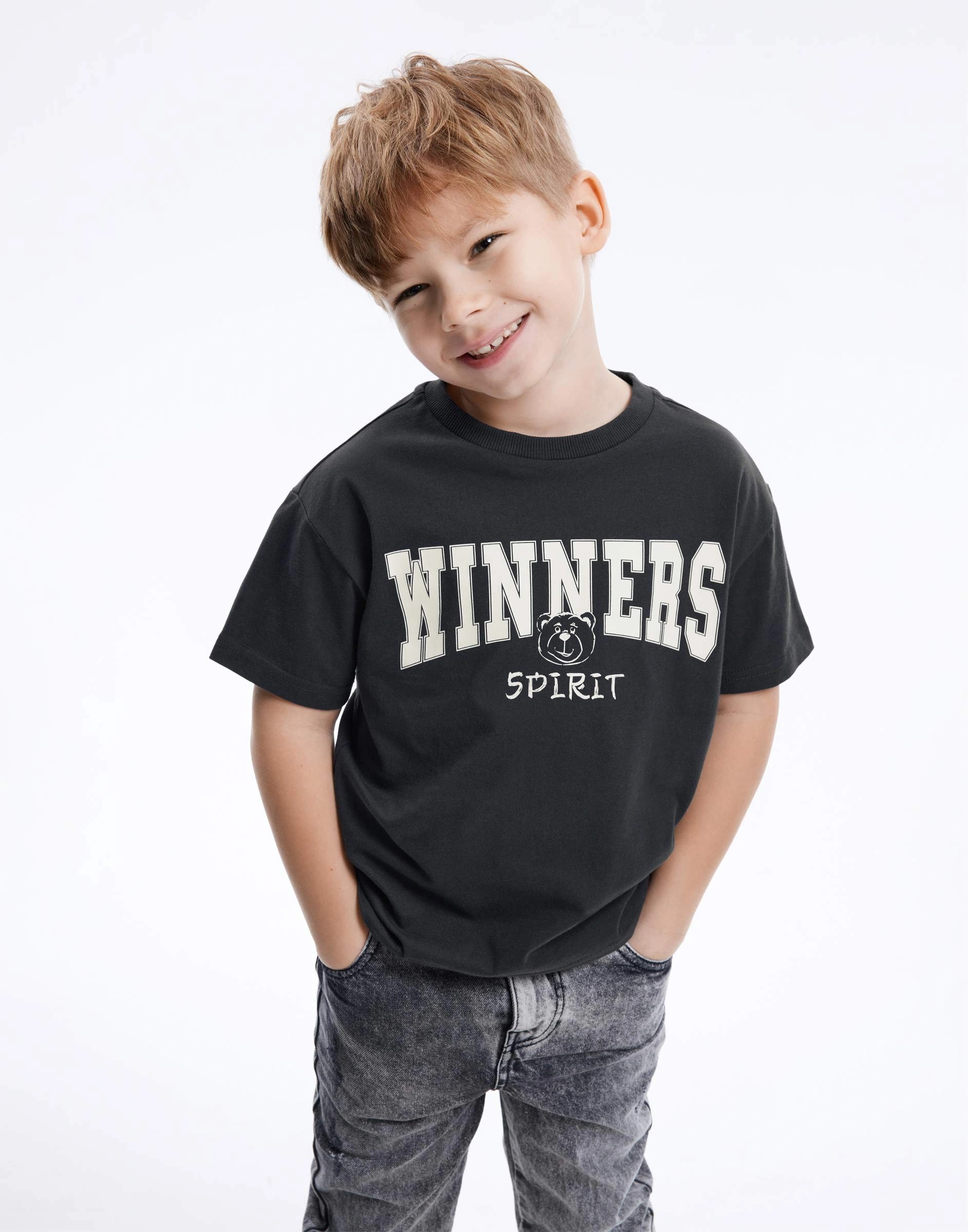 Тёмно-серая футболка oversize с принтом для мальчика Bkt016450-2