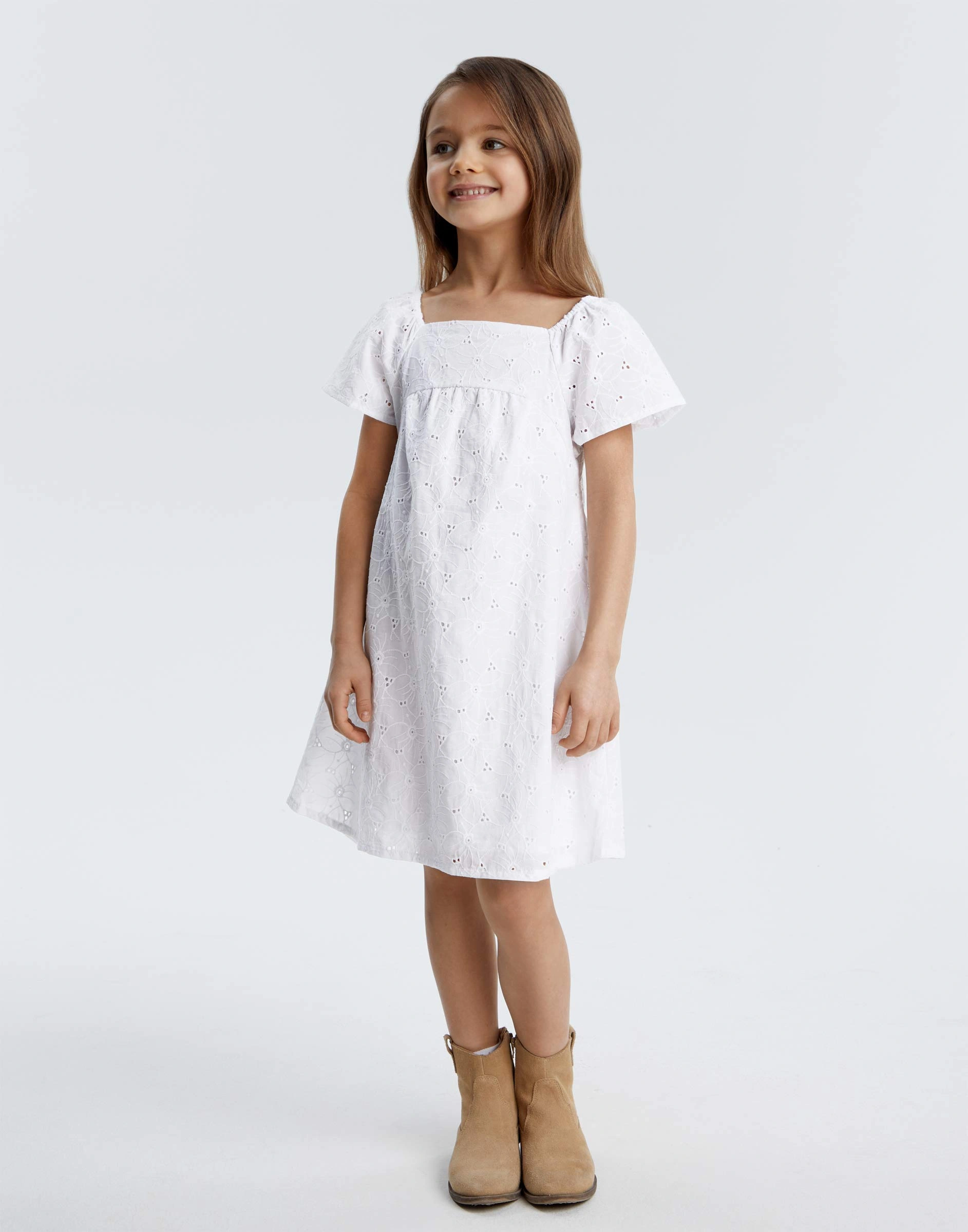 Белое платье с пышными рукавами и вышивкой для девочки Gdr029786-1