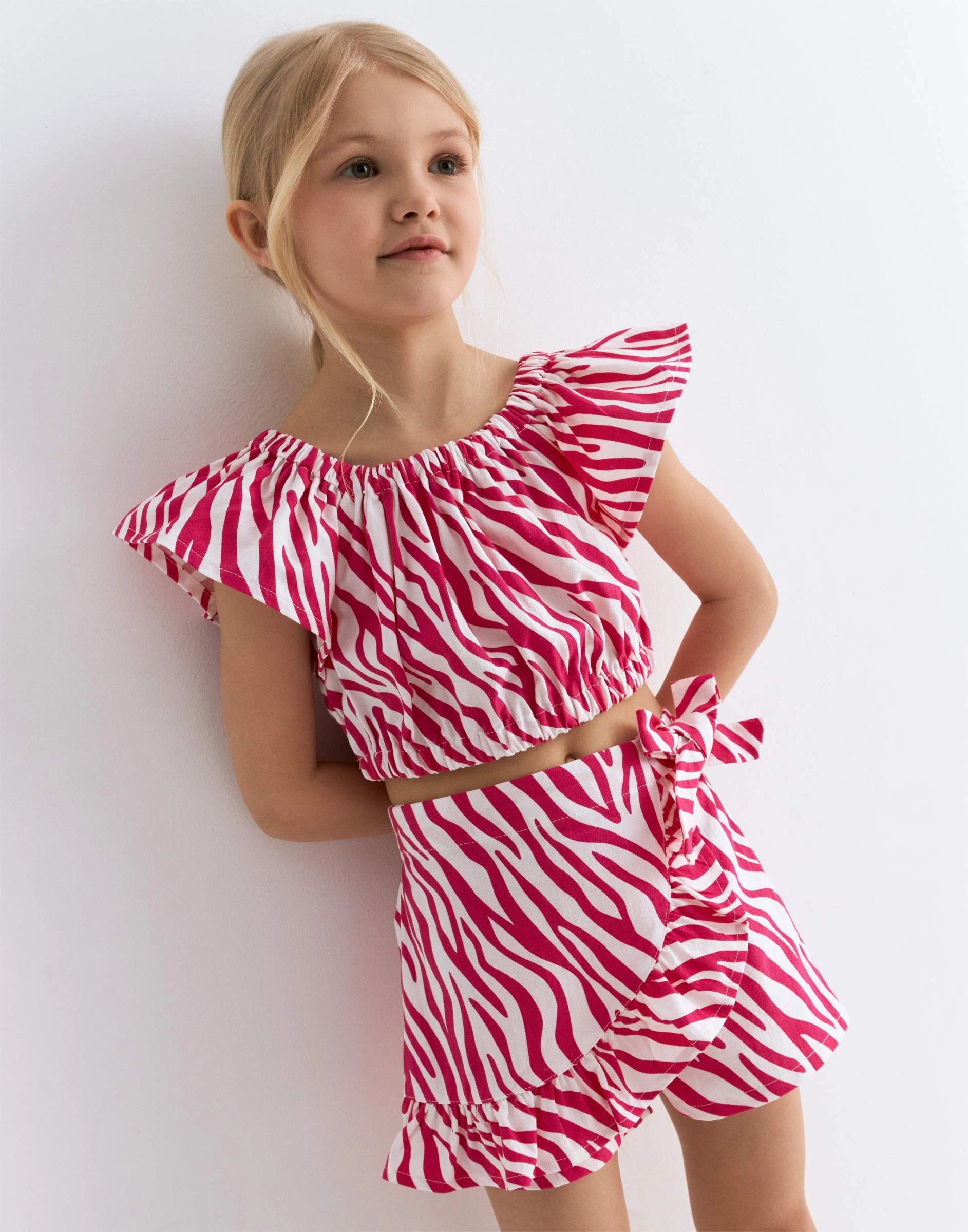 Блузка с анималистичным принтом и рукавами-крылышками для девочки Gwt004723-2