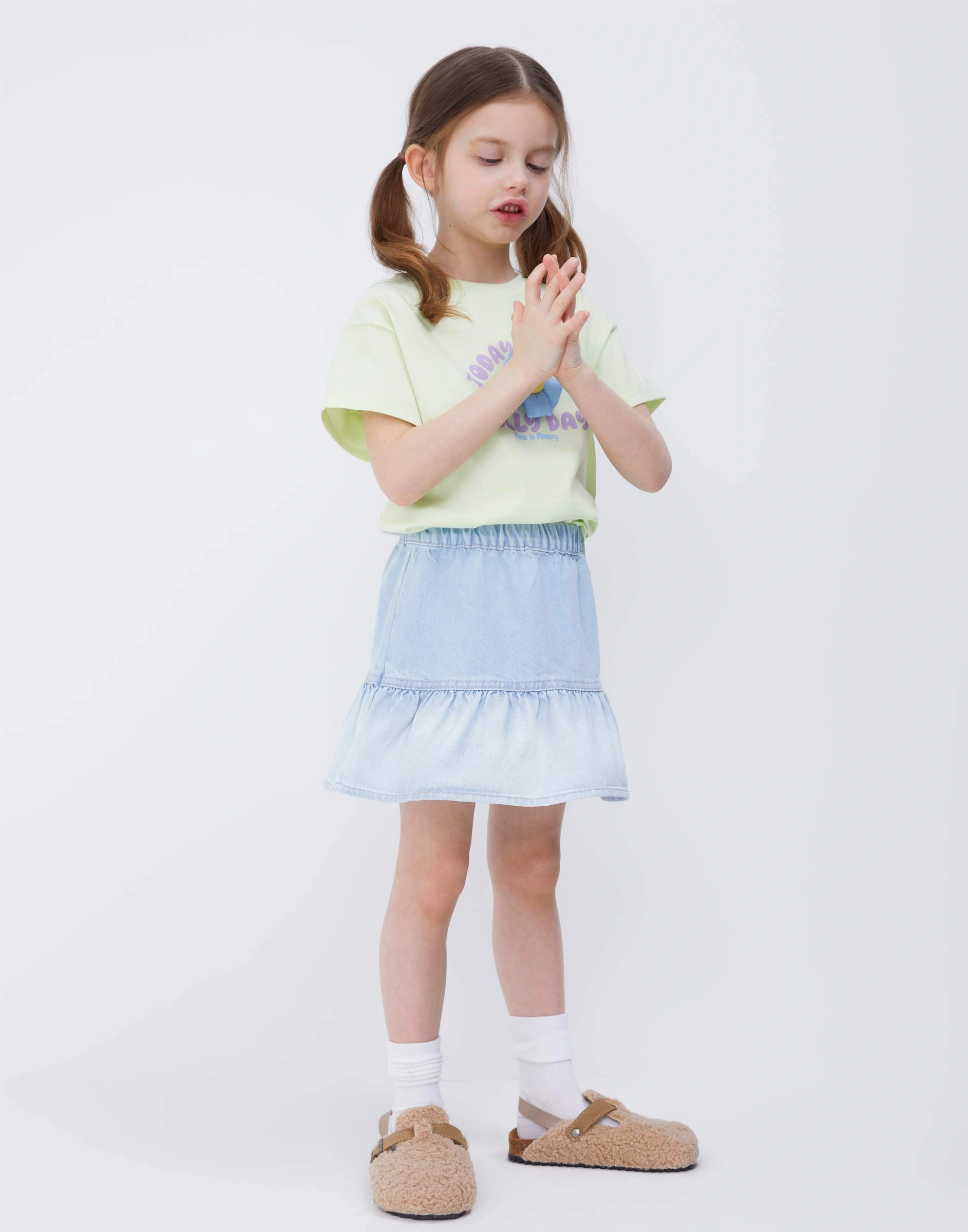 Джинсовая юбка-трапеция с воланом для девочки Gsk019546-1