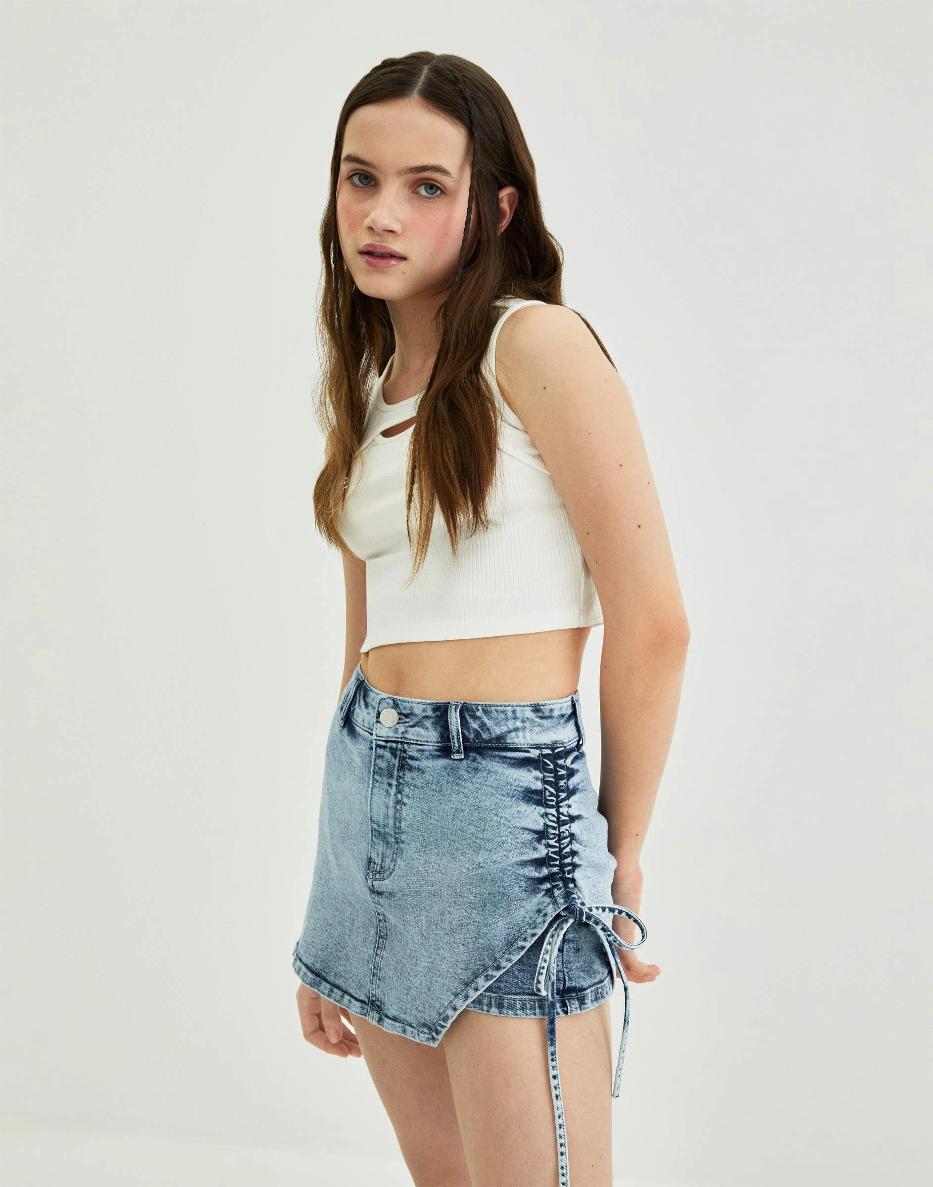 Джинсовая юбка-шорты с завязкой Gsk019597-1