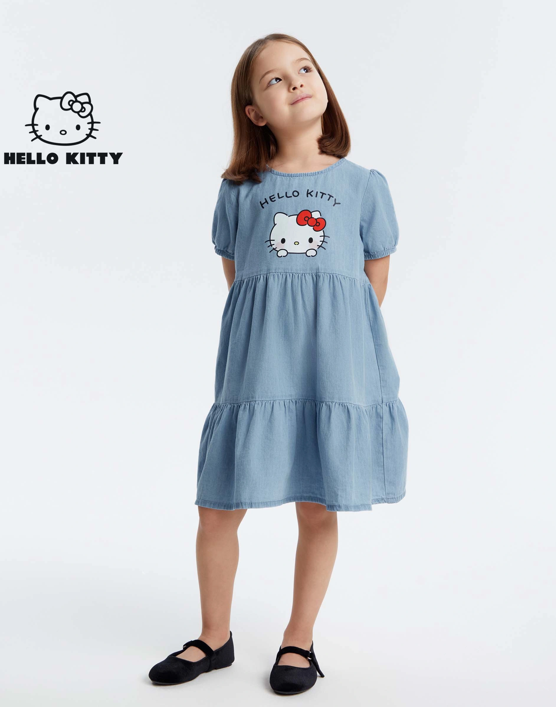 Джинсовое ярусное платье с принтом для девочки Gdr030246-1