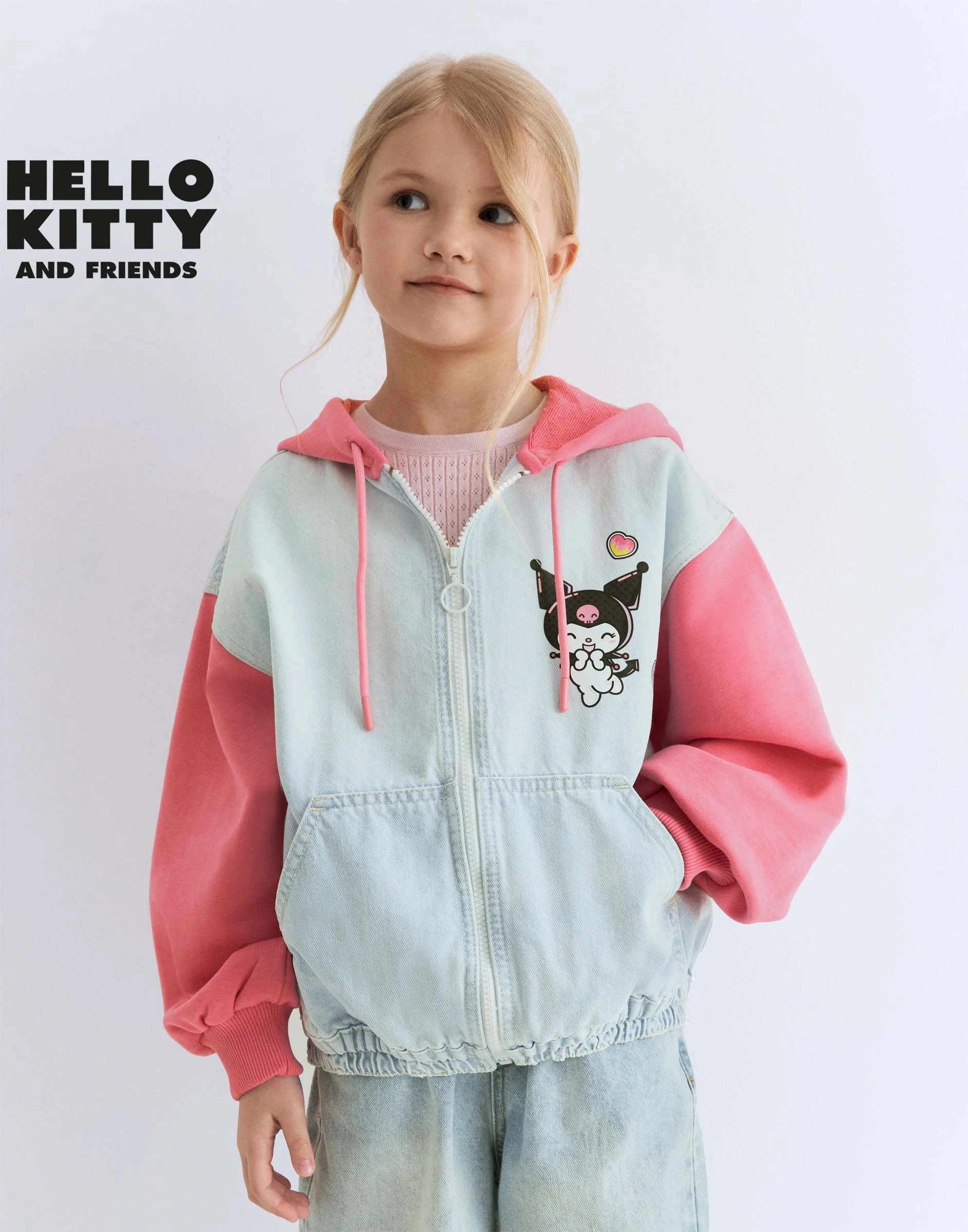 Джинсовый жакет (куртка) oversize с принтом Kuromi для девочки Gjc006891-1