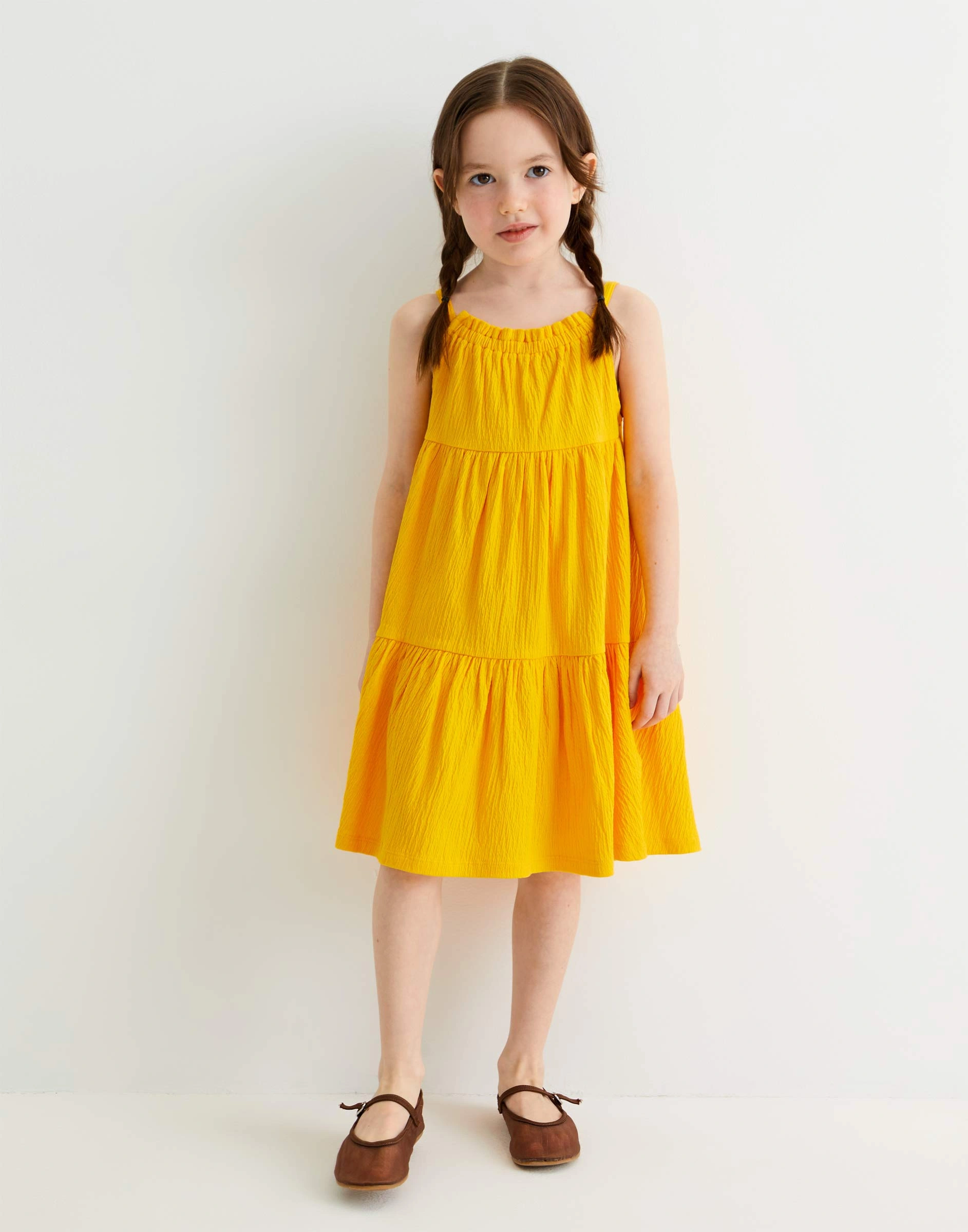 Жёлтый ярусный сарафан из крепа для девочки Gdr030055-2