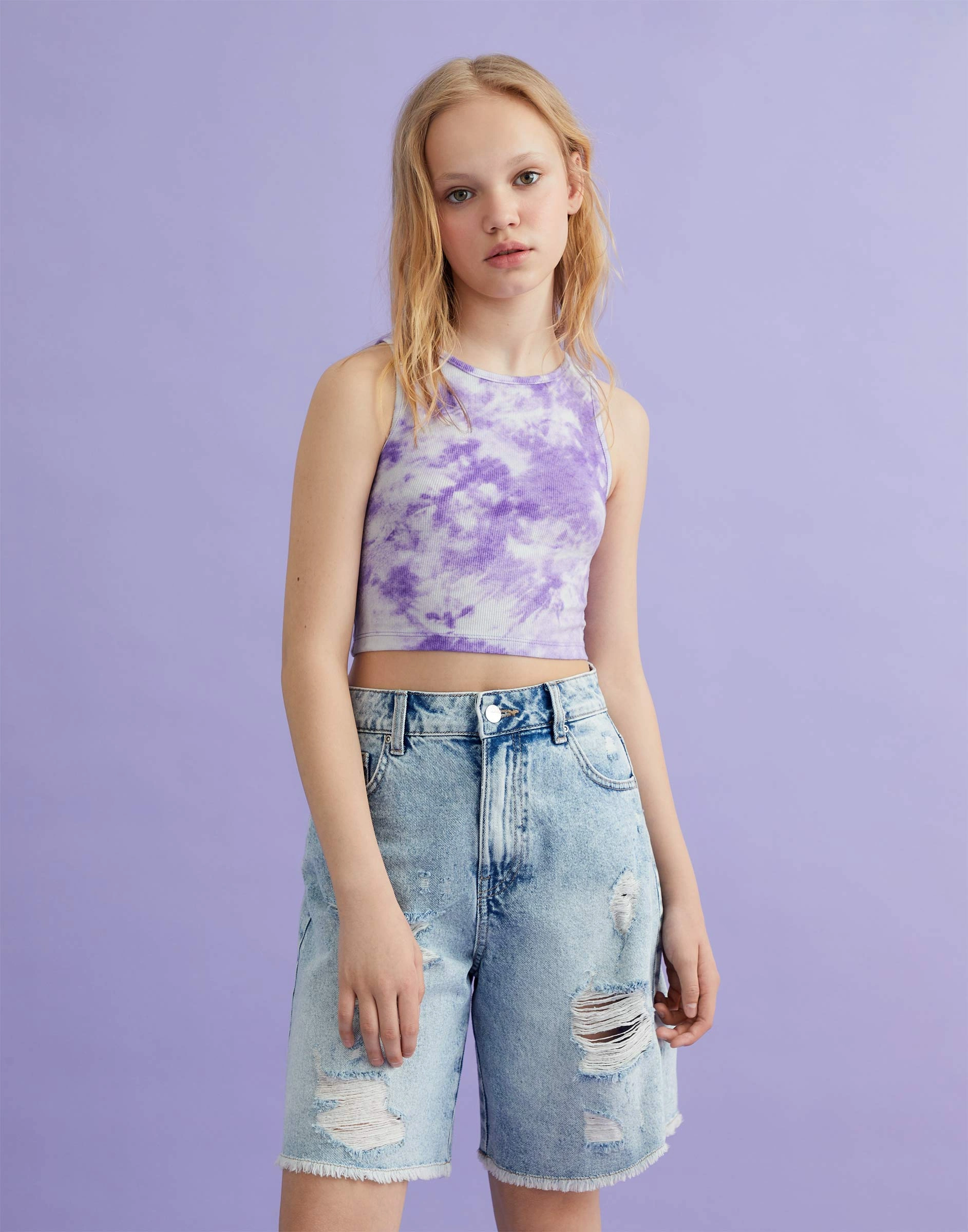 Лиловый кроп-топ с эффектом варки Gtn004591-1