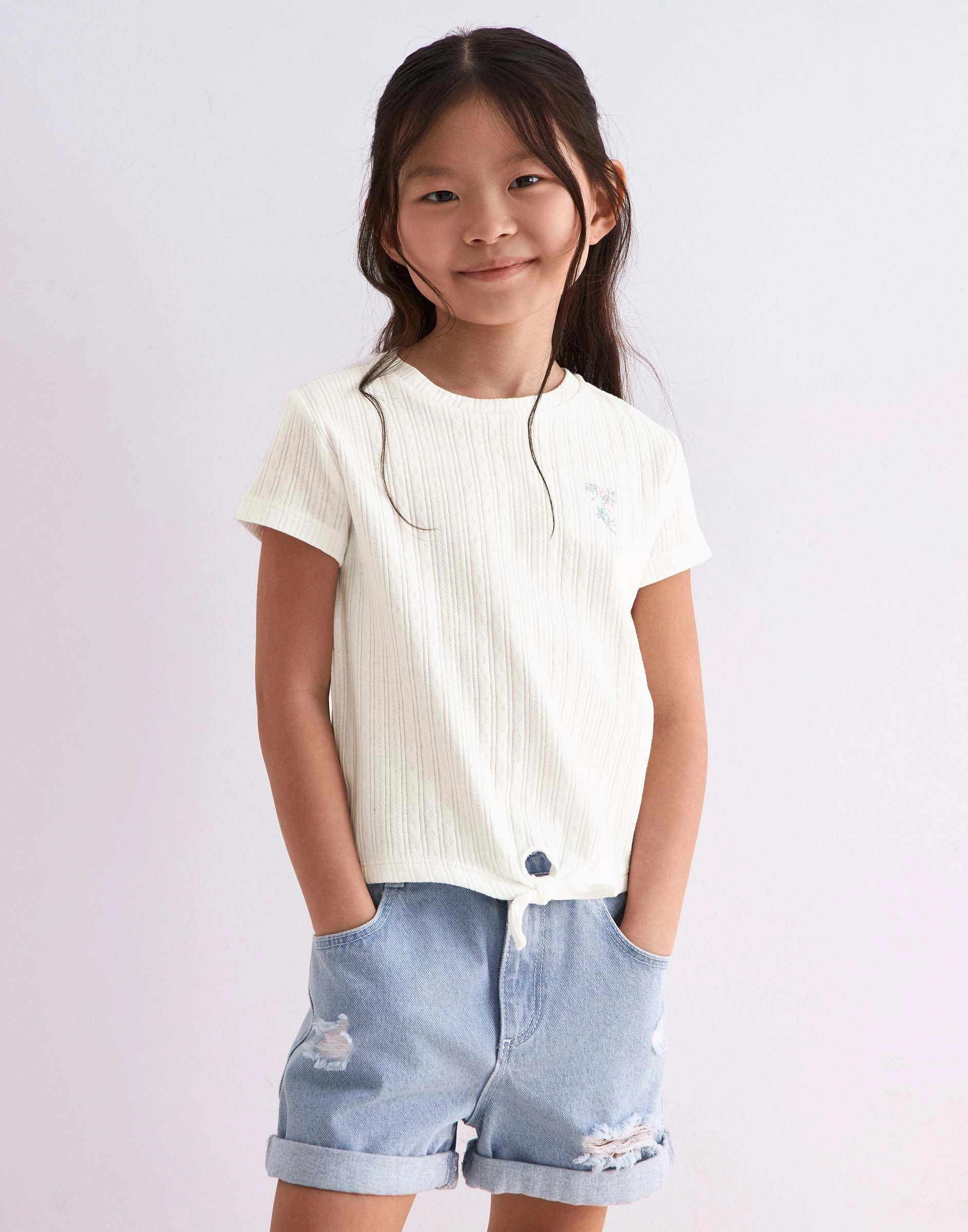 Молочная футболка с вышивкой и завязкой для девочки Gkt026179-3