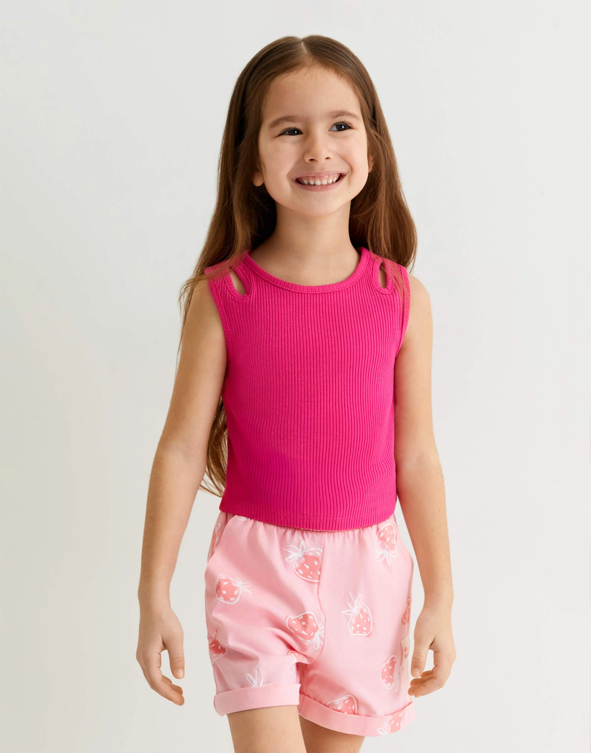 Розовая майка в рубчик с вырезами на бретелях для девочки Gtn004544-2