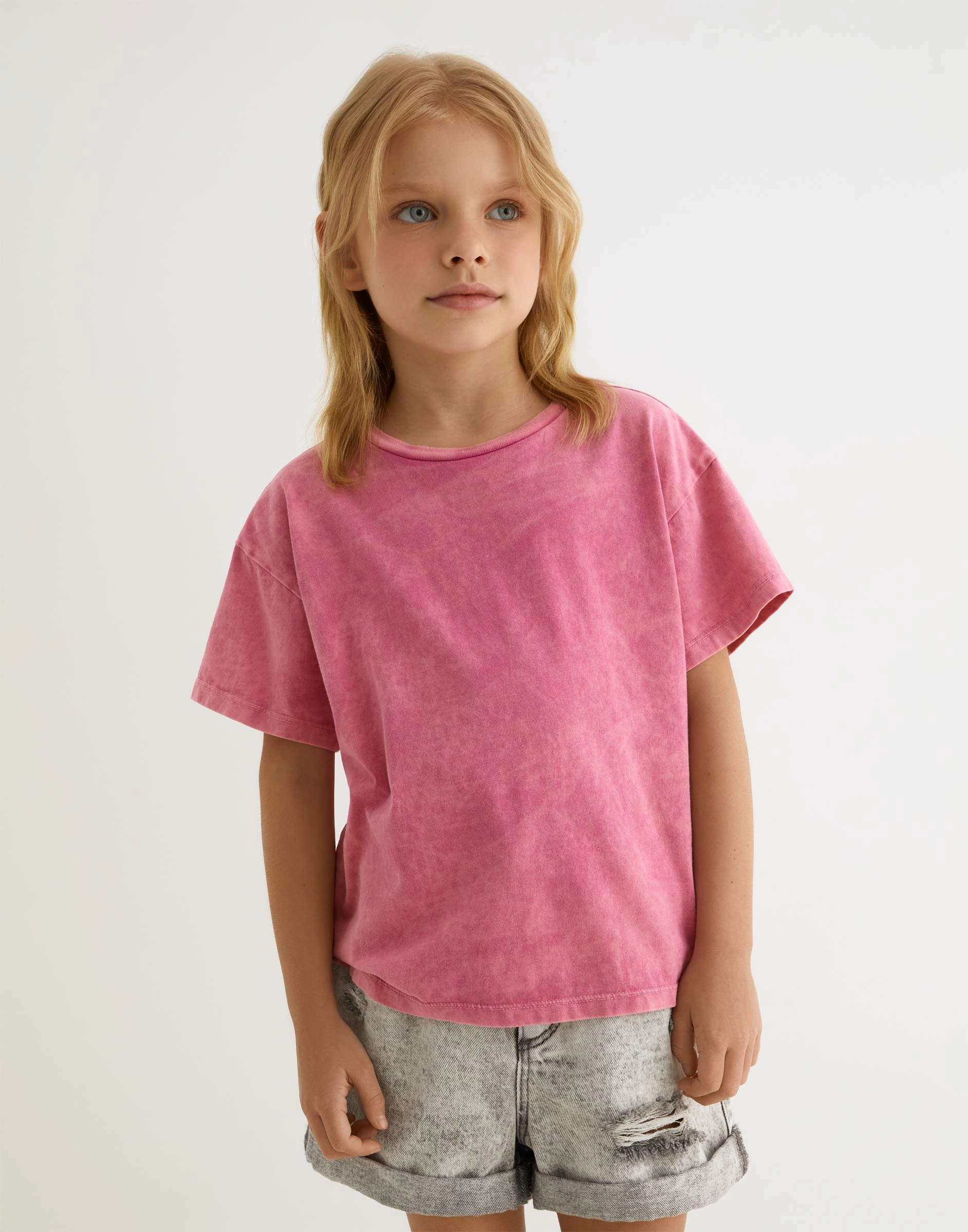 Розовая футболка oversize с эффектом варки для девочки Gkt028270-2