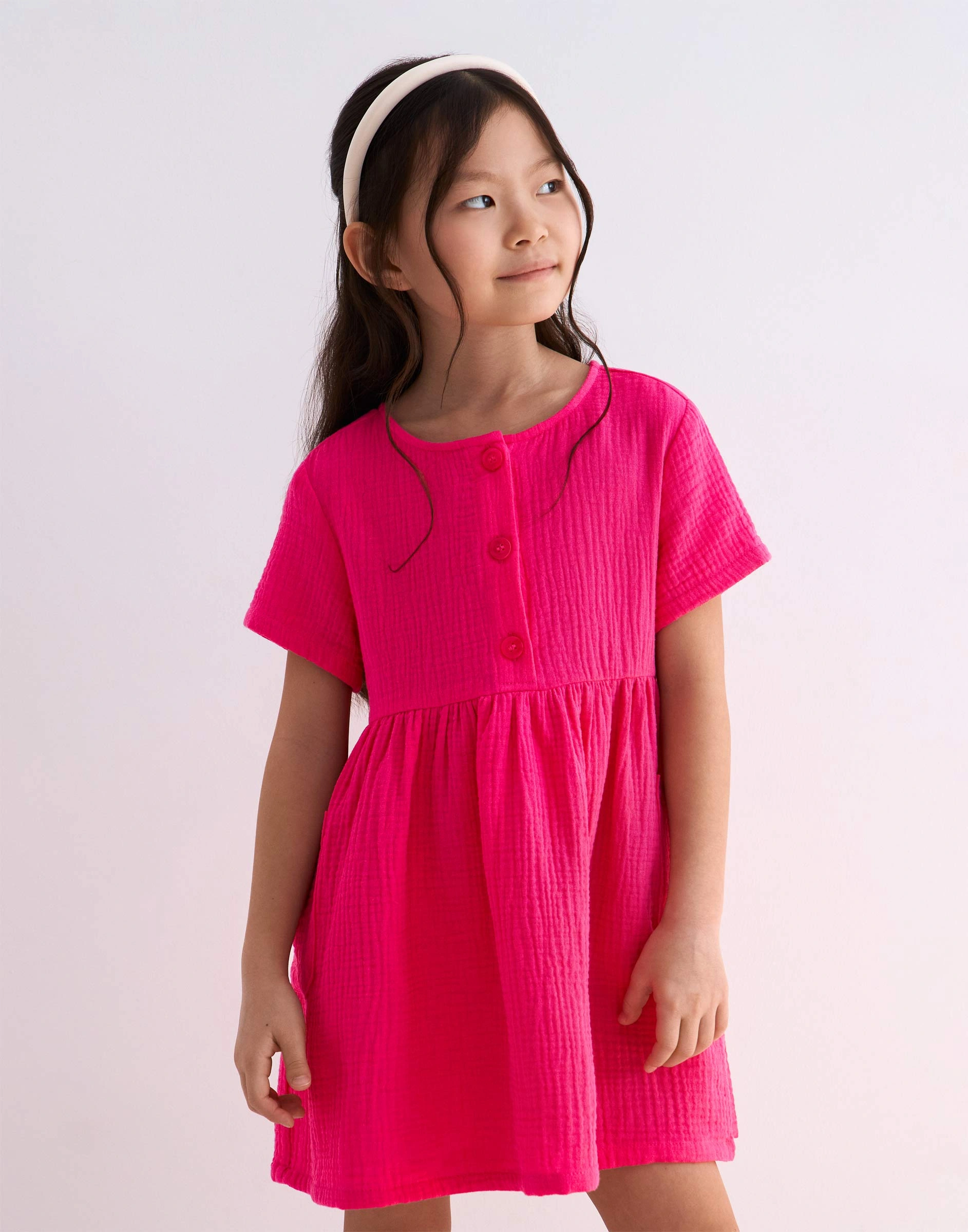 Розовое платье с пуговицами и карманами для девочки Gdr029978-1