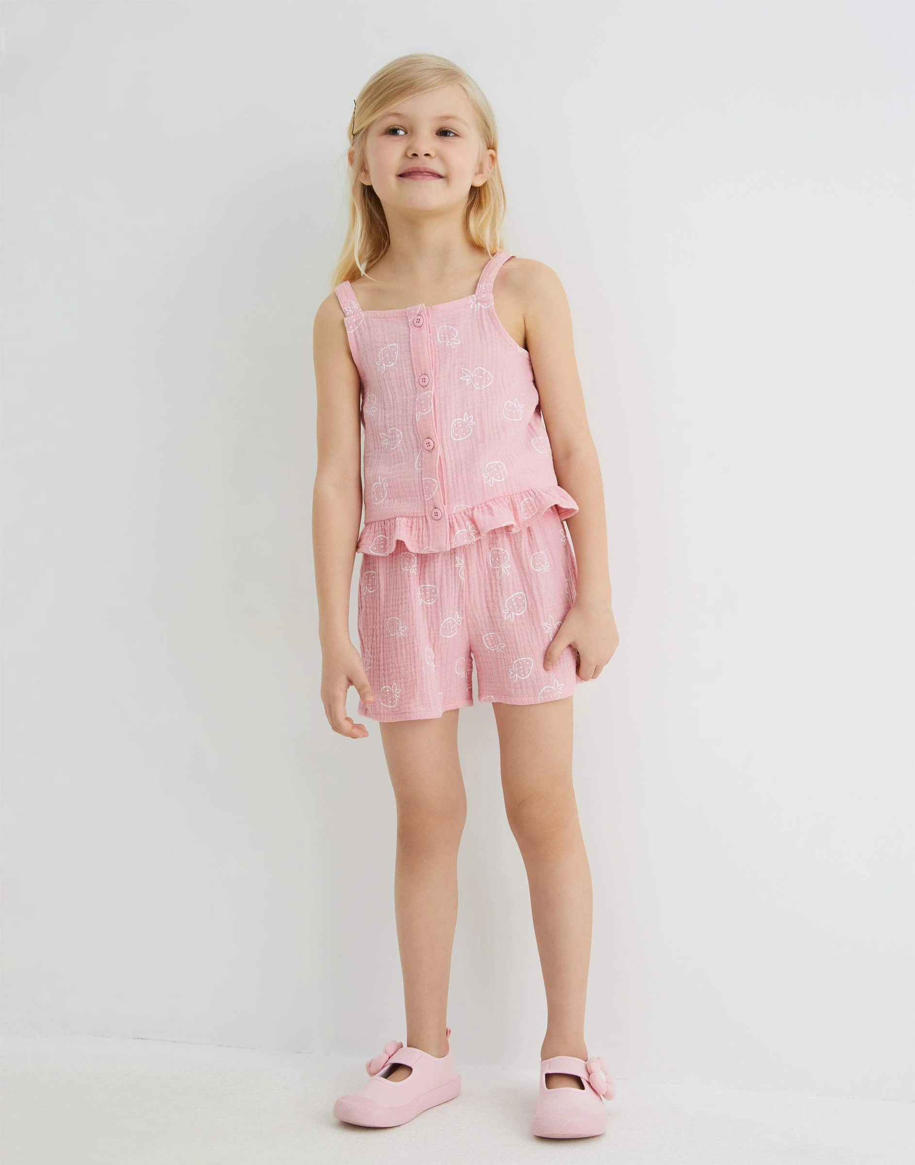 Розовые шорты Paperbag с принтом для девочки Gsh012621-1