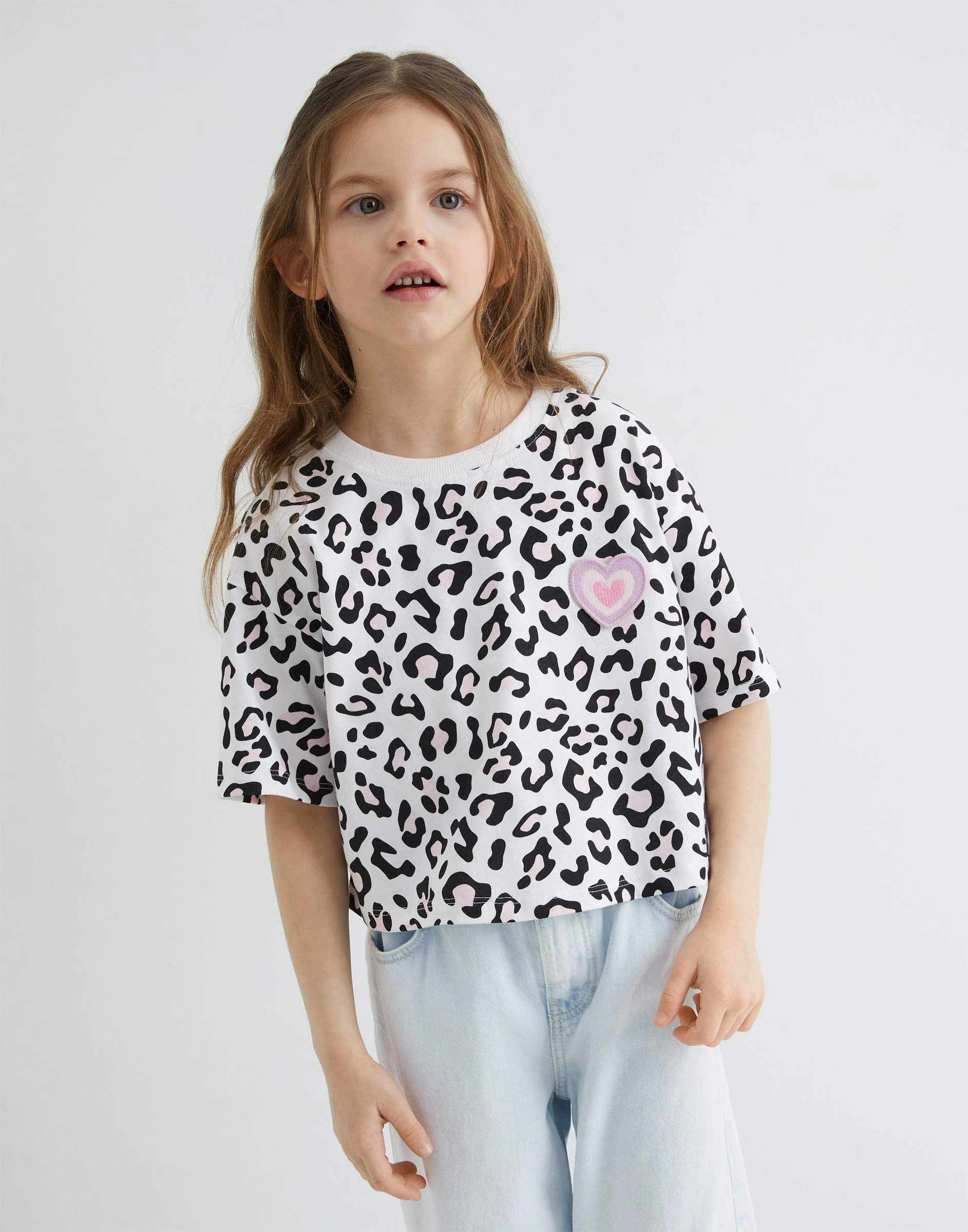 Укороченная футболка oversize с принтом и вышивкой для девочки Gkt026696-1