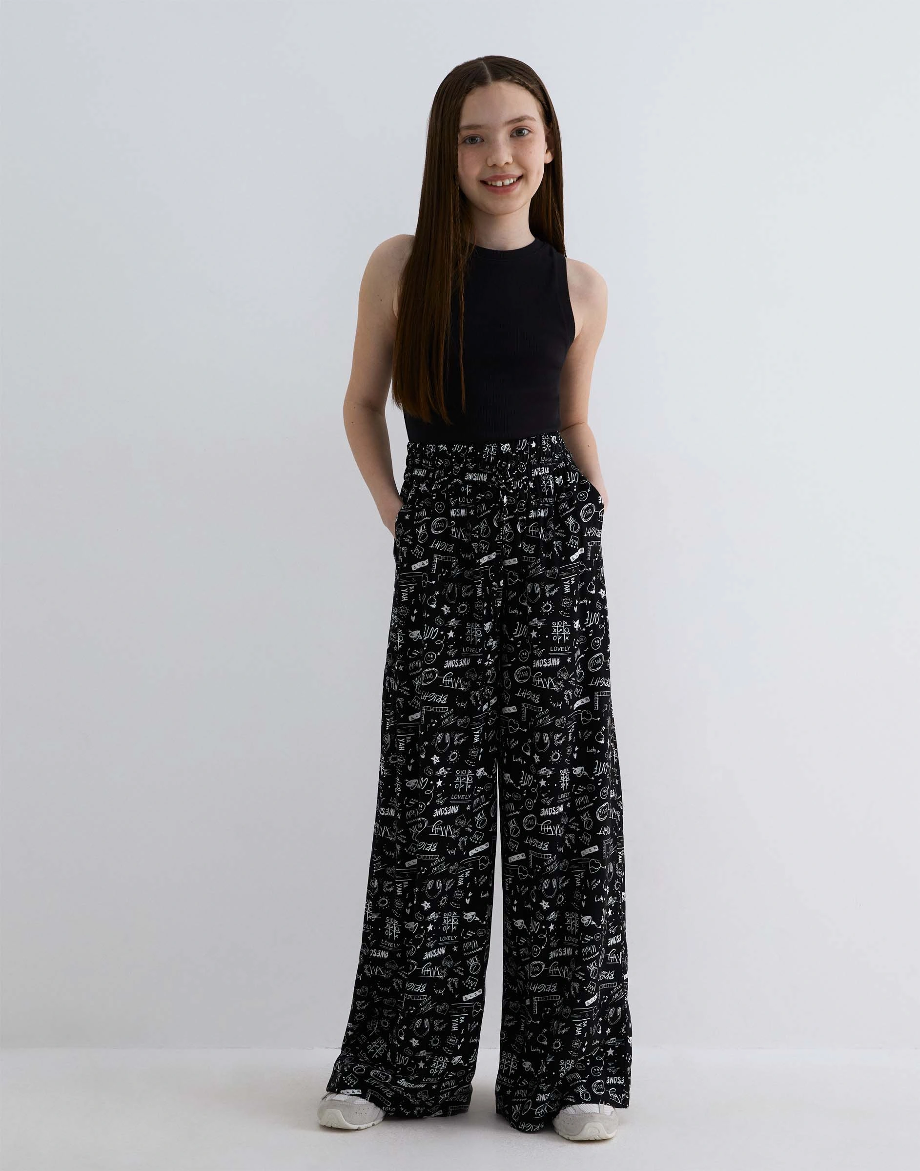 Чёрные брюки Wide leg с принтом Gpt010584-2
