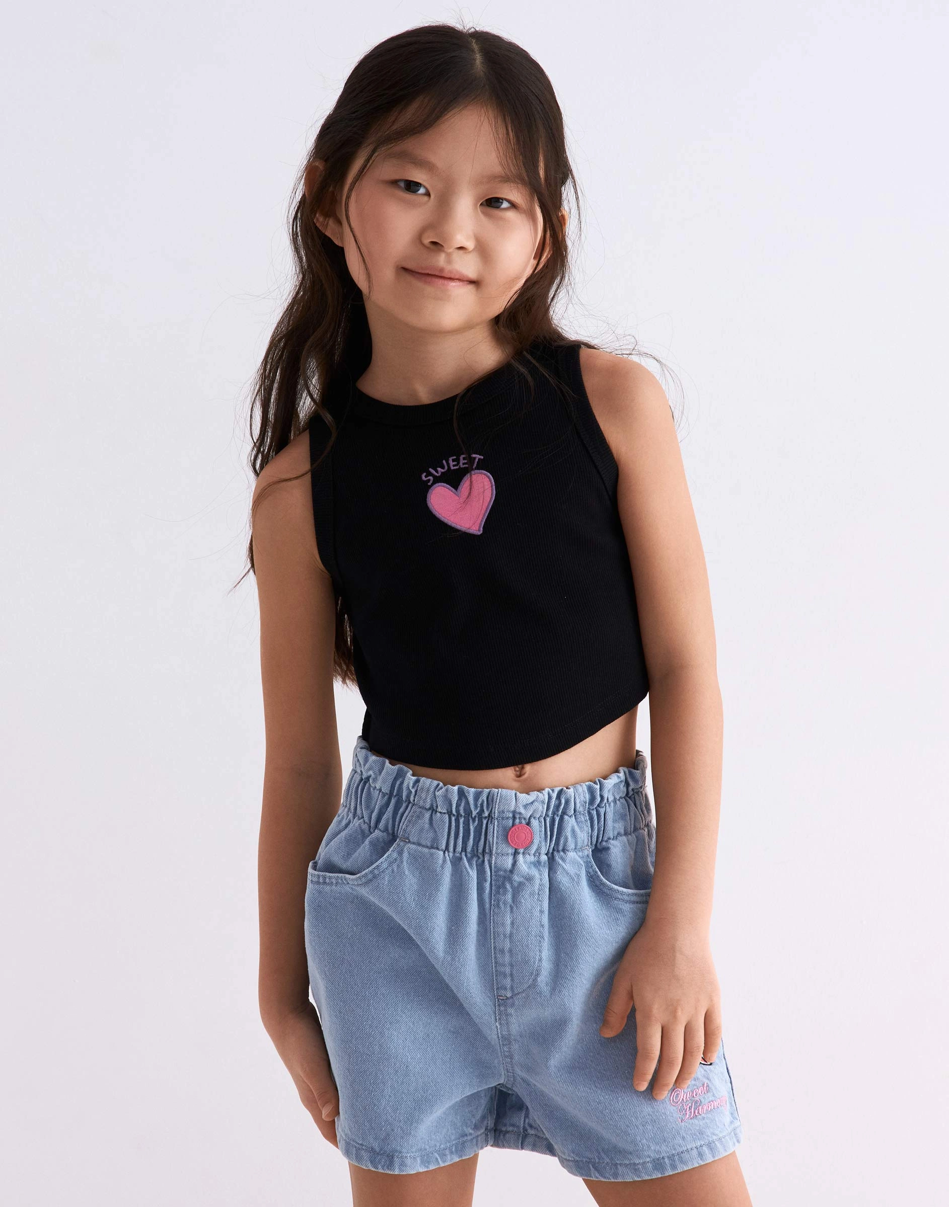 Чёрный кроп-топ в рубчик с вышивкой для девочки Gtn004643-1