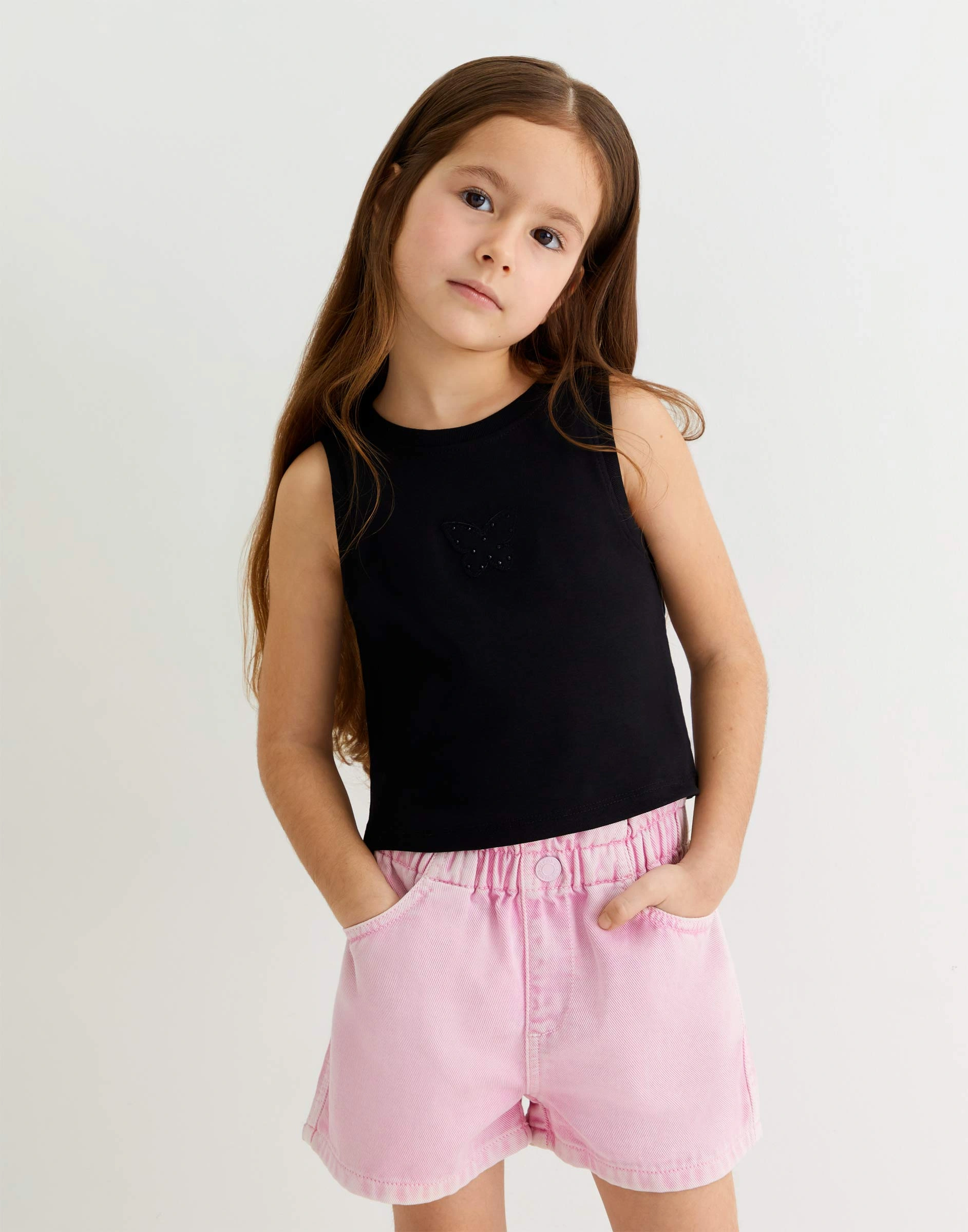 Чёрный топ в рубчик с аппликацией для девочки Gtn004528-2