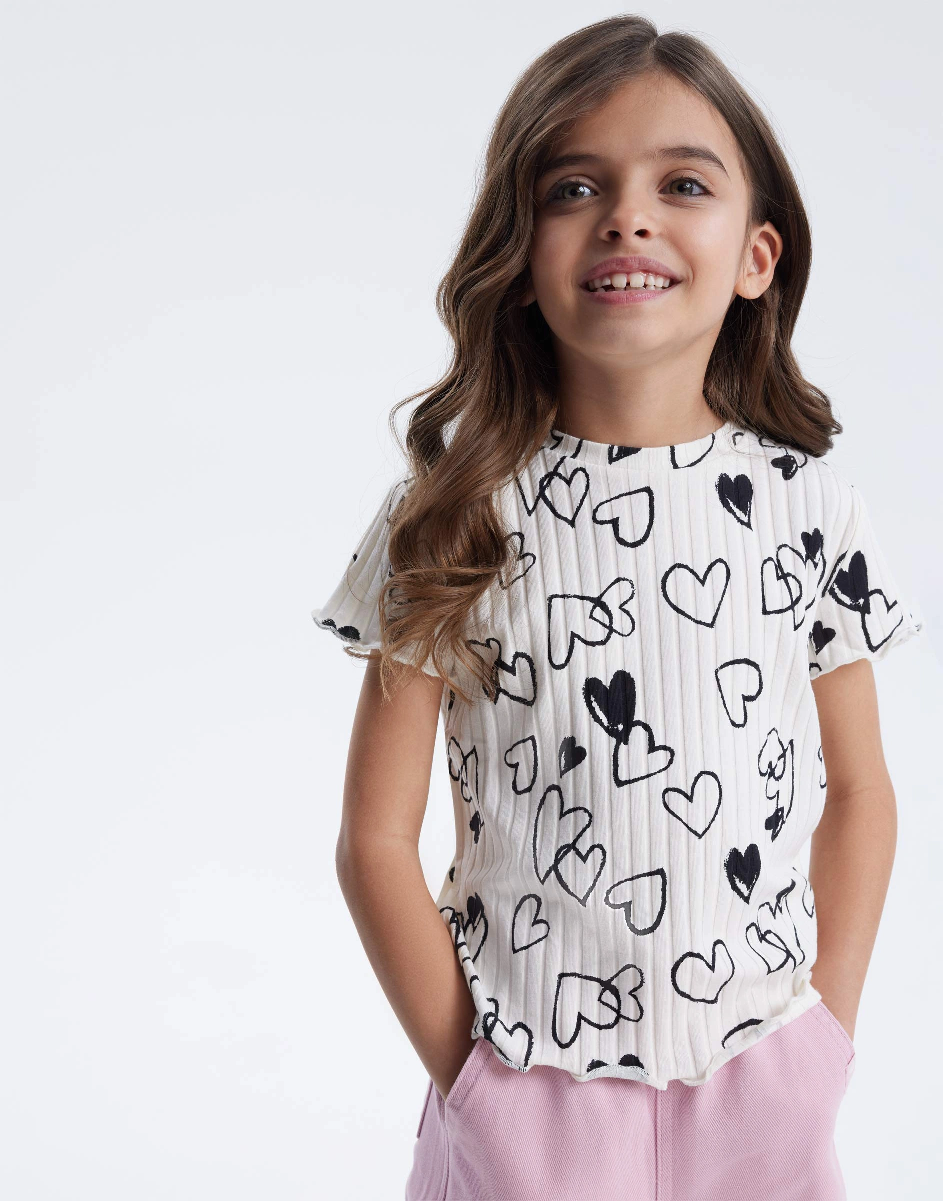 Молочная футболка с принтом и волнистым краем для девочки Gkt026191-1