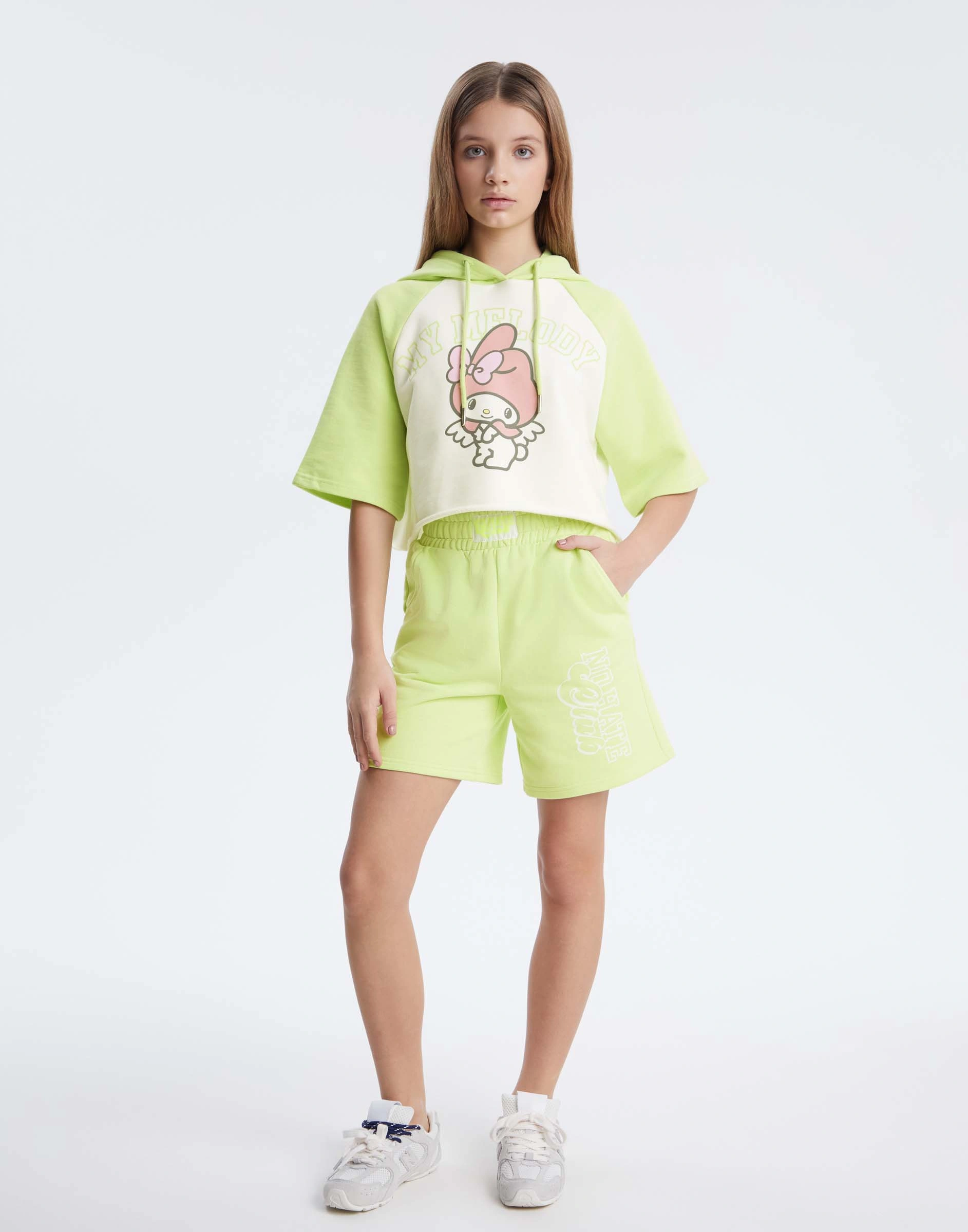 Салатовые спортивные шорты с нашивкой и принтом Gsh012861-1