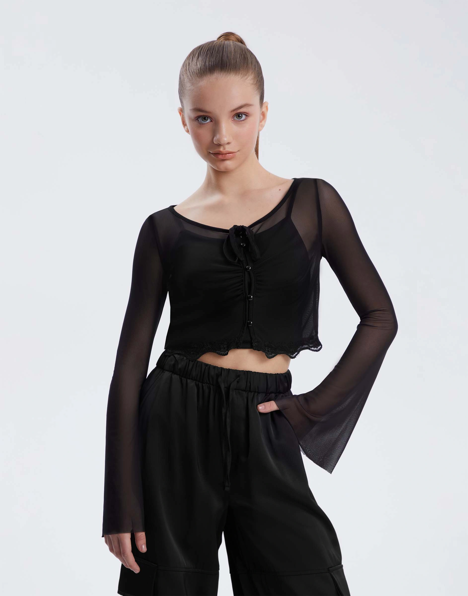 Чёрная укороченная многослойная блузка Gkt025343-2