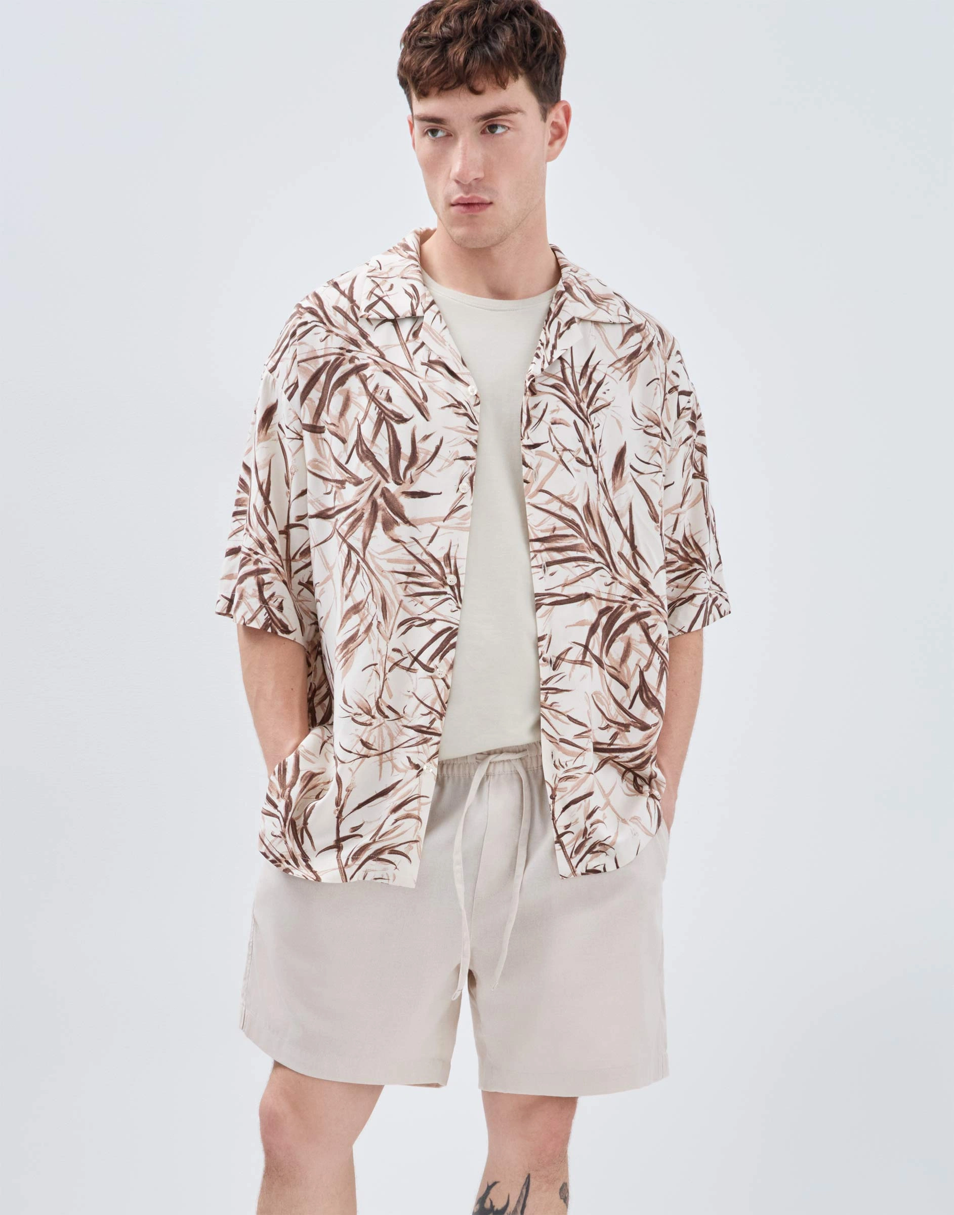 Бежевые шорты Easy fit со льном Bsh008009-1