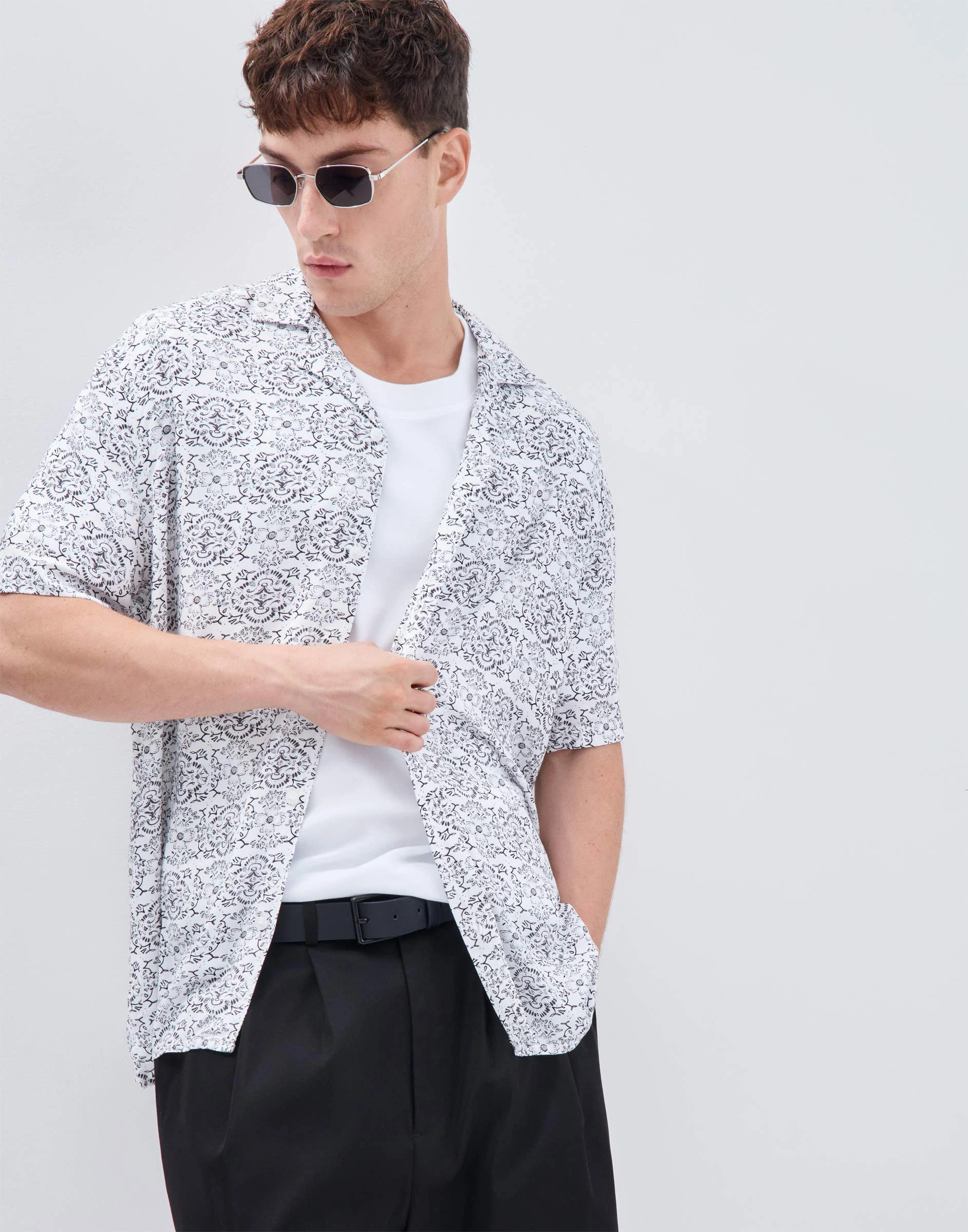 Белая рубашка с коротким рукавом и принтом Bwt001950-2
