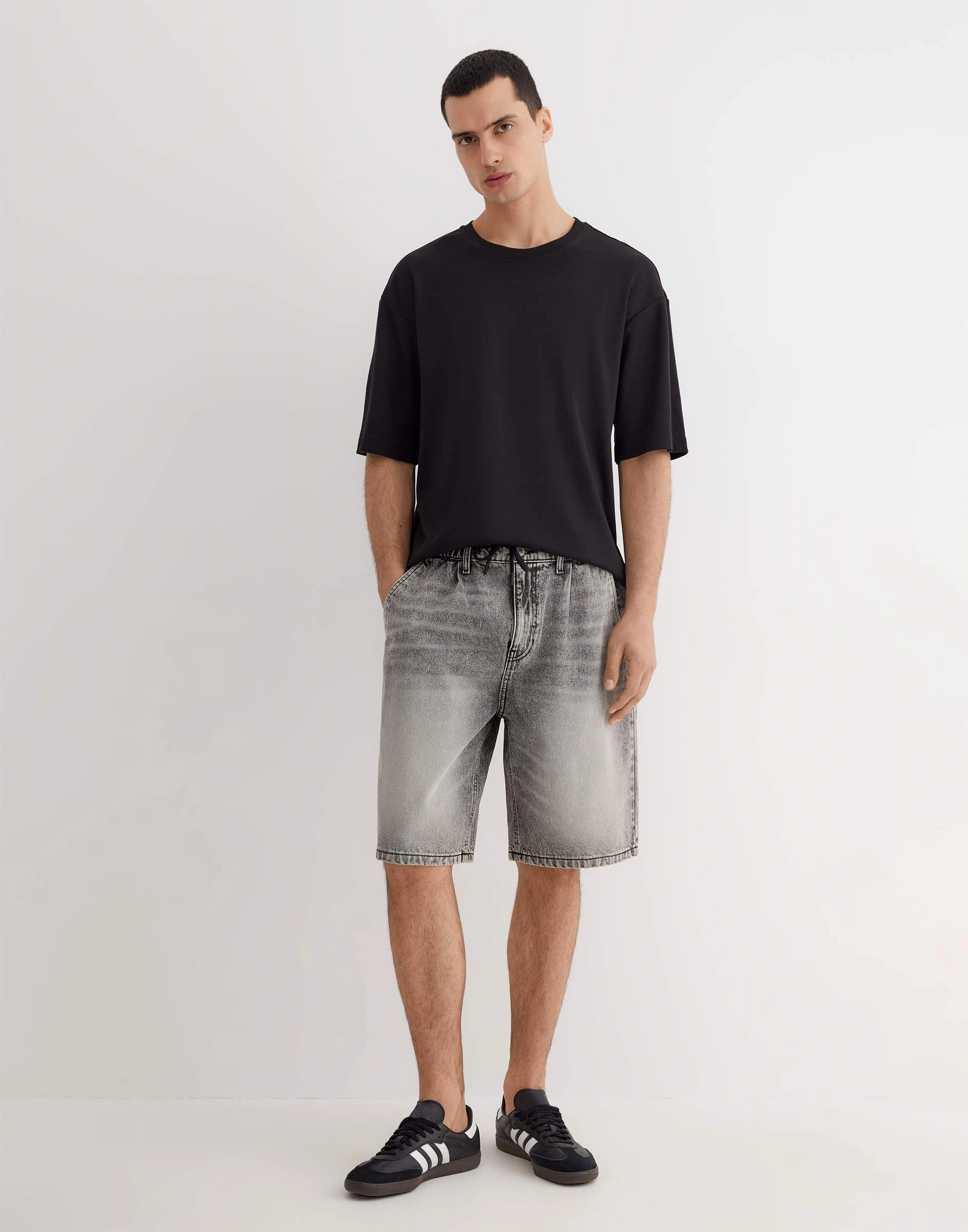 Серые джинсовые шорты Easy Fit со шнурком Bsh008257-1