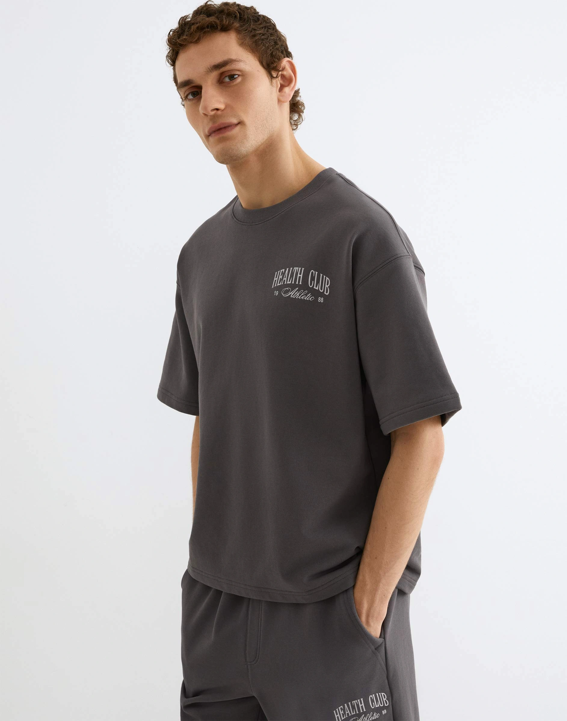 Серый пуловер с коротким рукавом и принтом Bac014058-1