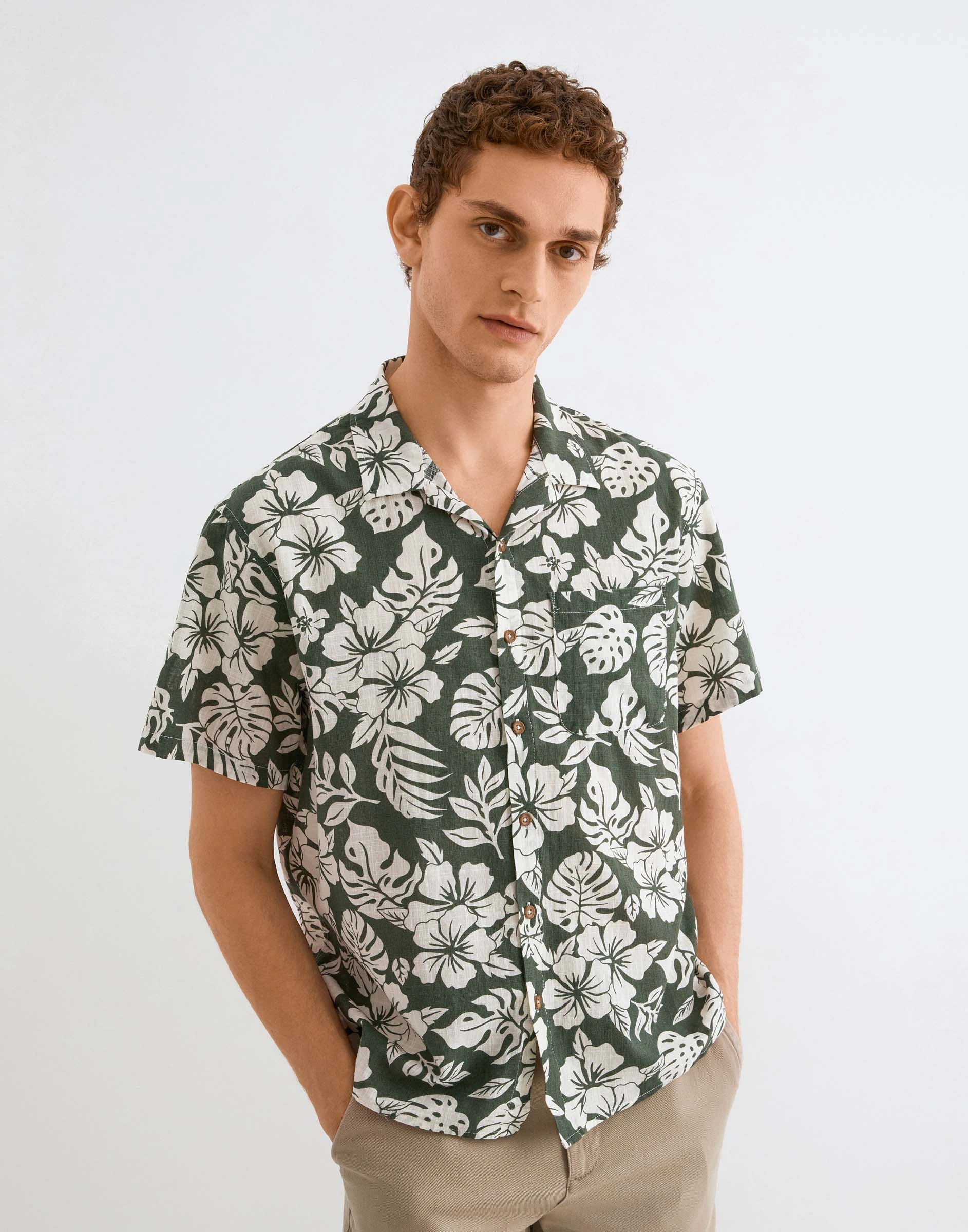 Хаки рубашка с коротким рукавом и принтом Bwt001898-1