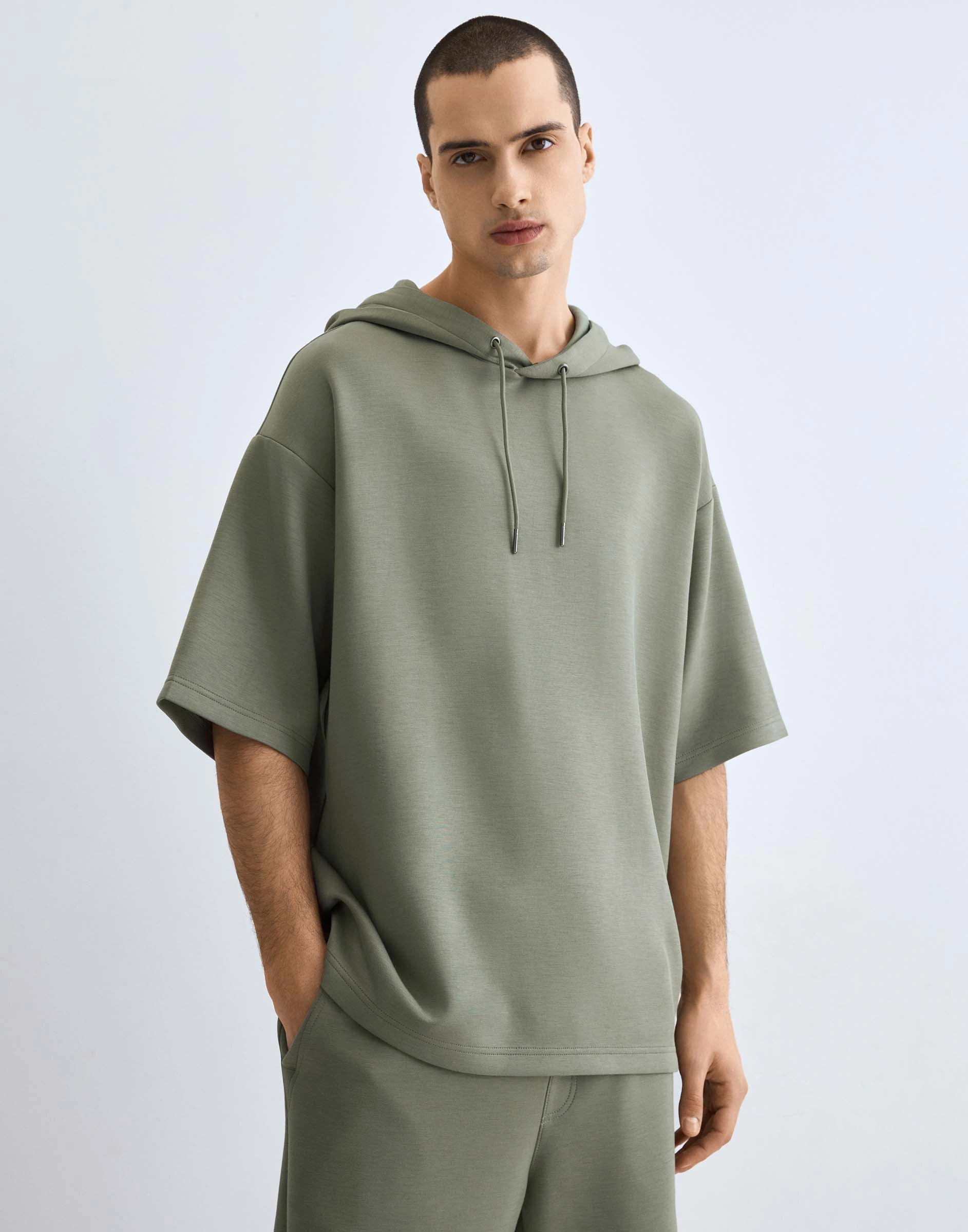 Хаки свободное худи с короткими рукавами из скубы Bac013744-2