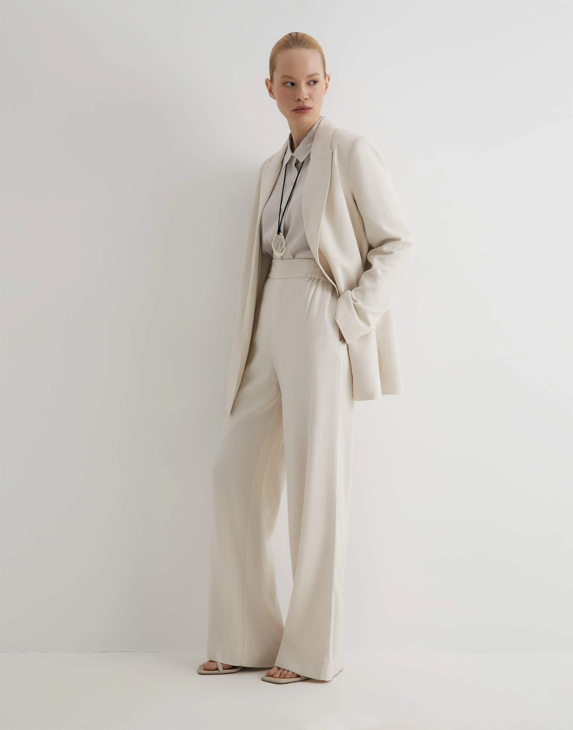 Бежевые брюки Wide leg со льном Gpt010620-2