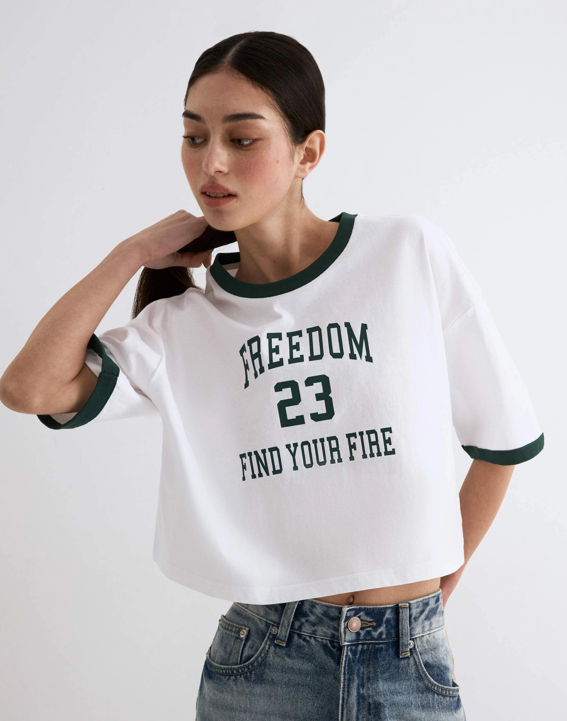 Белая укороченная футболка oversize с принтом Gkt026842-2