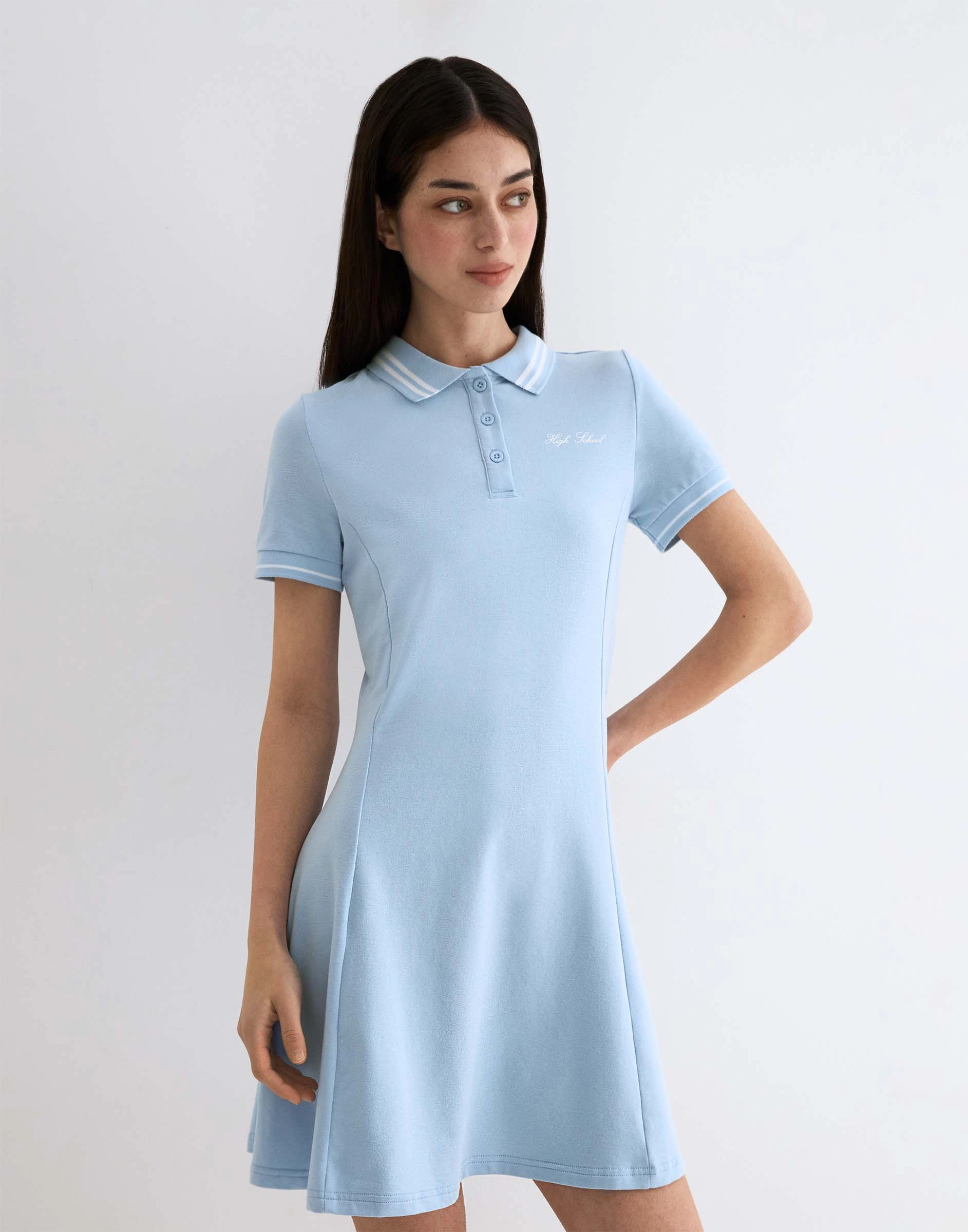 Голубое платье с воротником поло и принтом Gdr030291-2