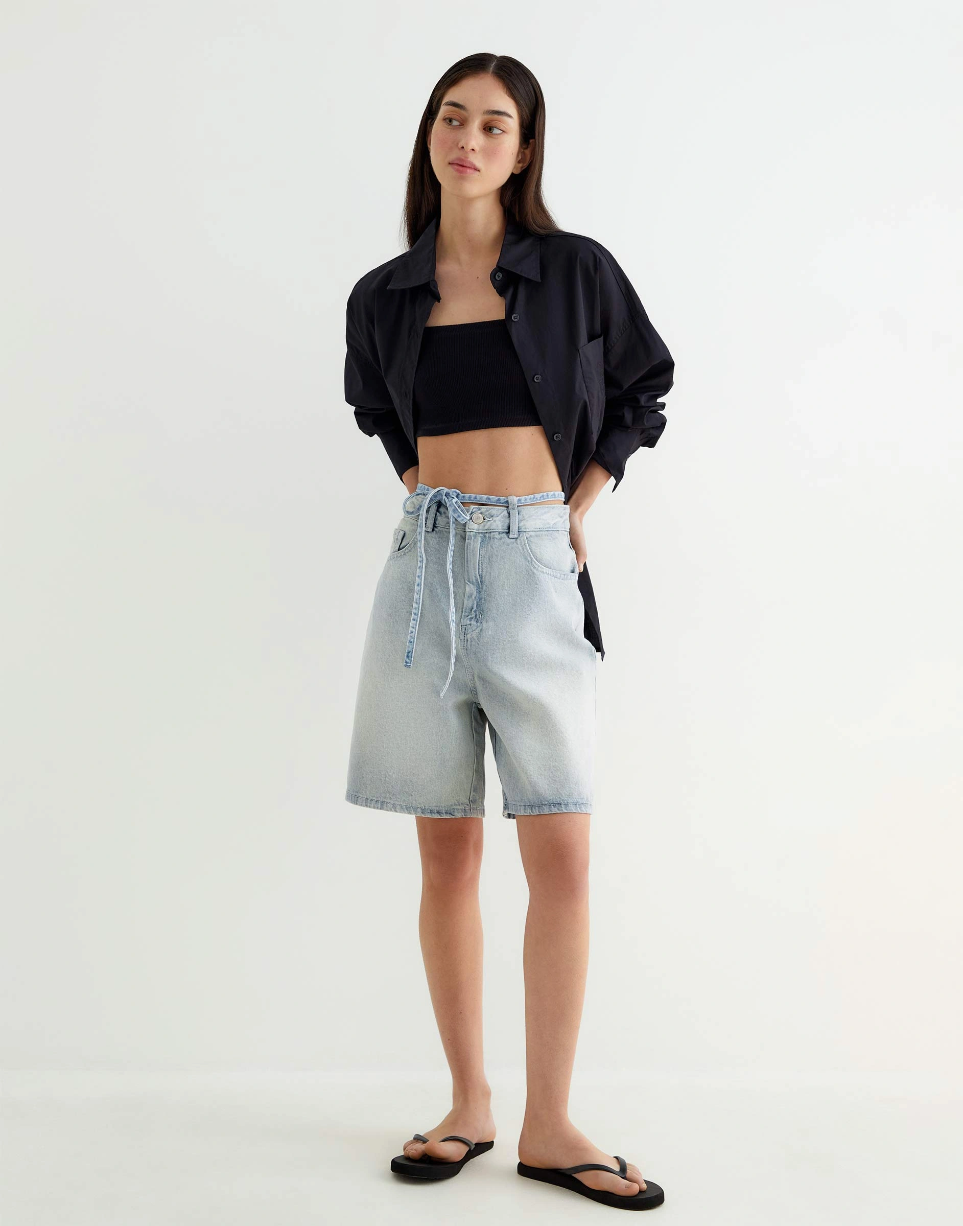 Джинсовые шорты с поясом и высокой посадкой Gsh012771-1