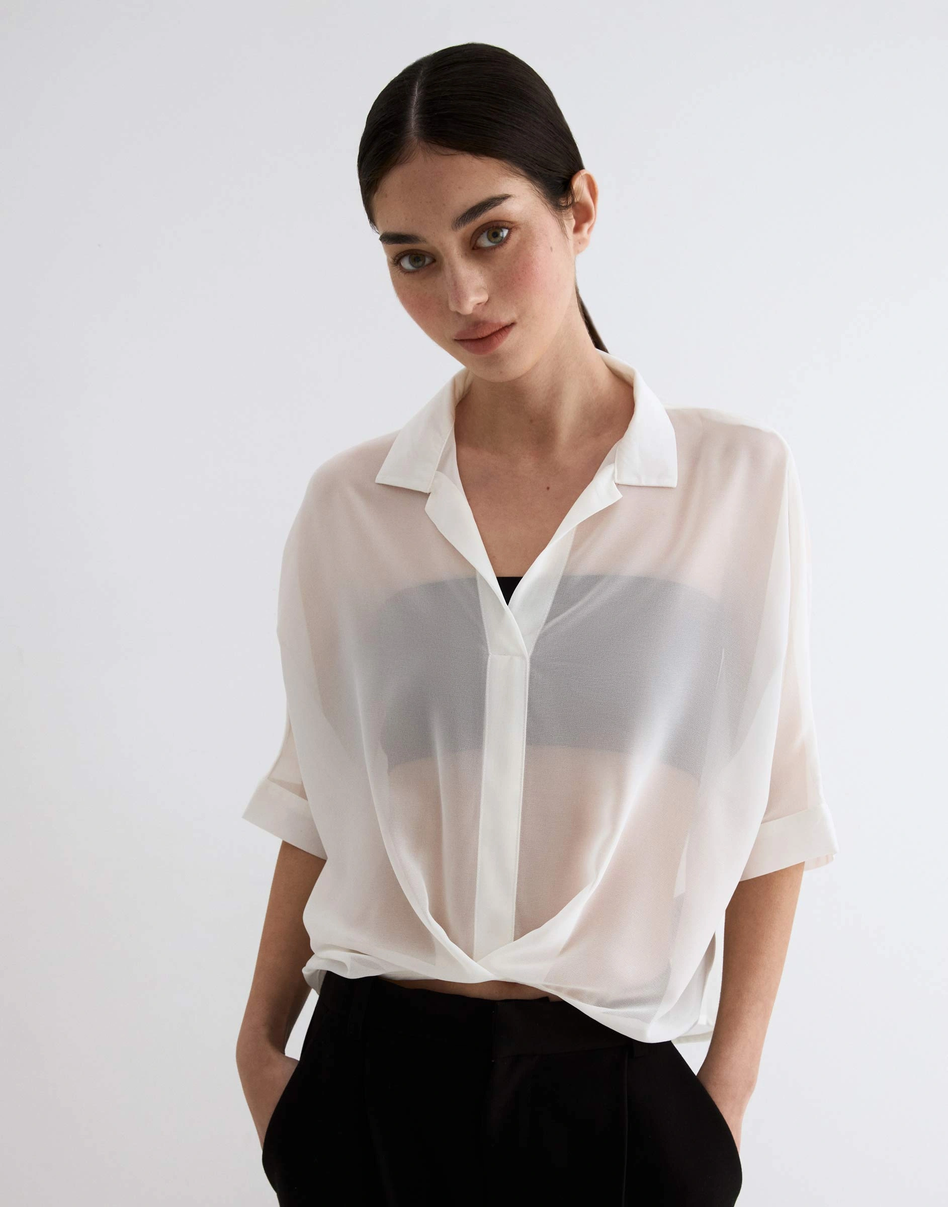 Молочная блузка oversize с перекрёстом и удлинённой спинкой Gwt004516-1