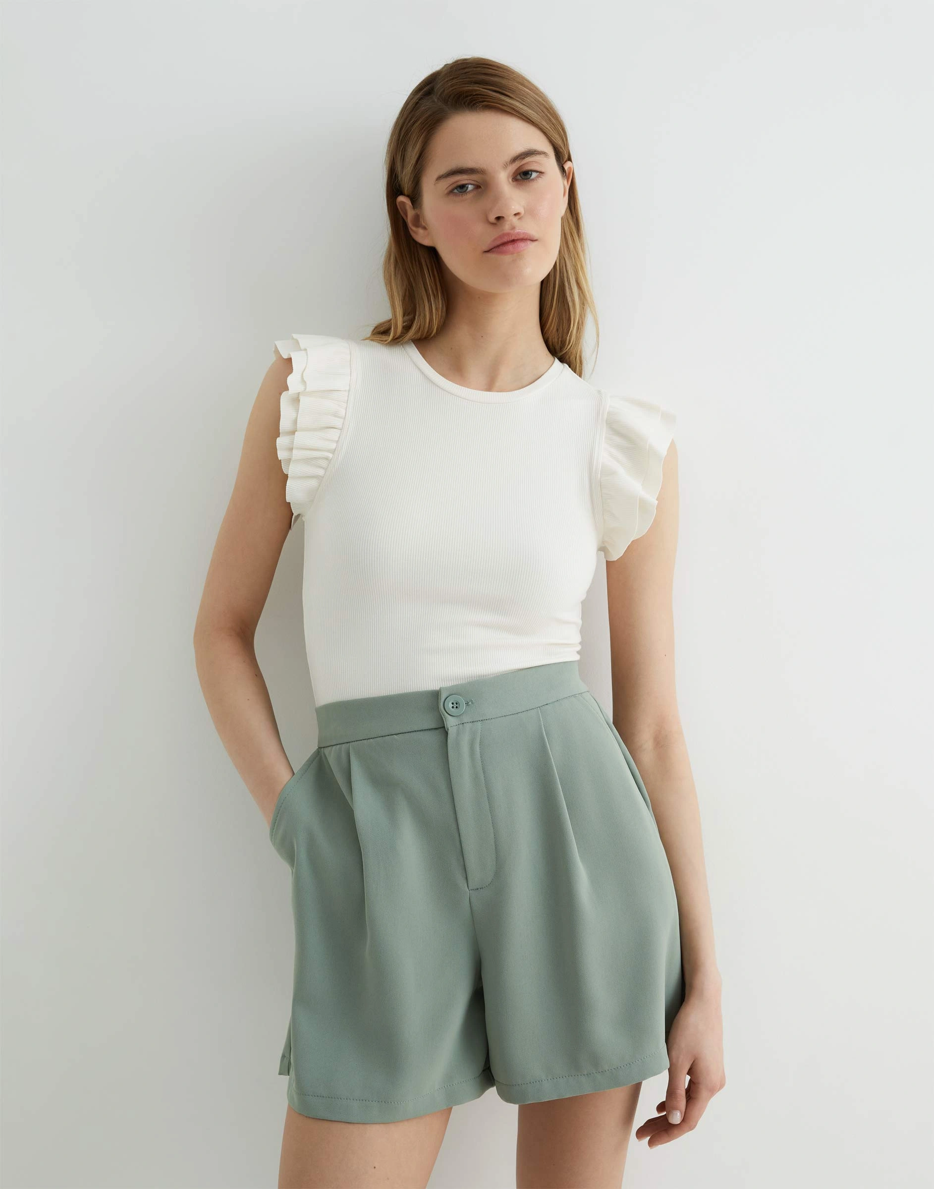 Молочная футболка в рубчик с рукавами-крылышками Gkt027079-1