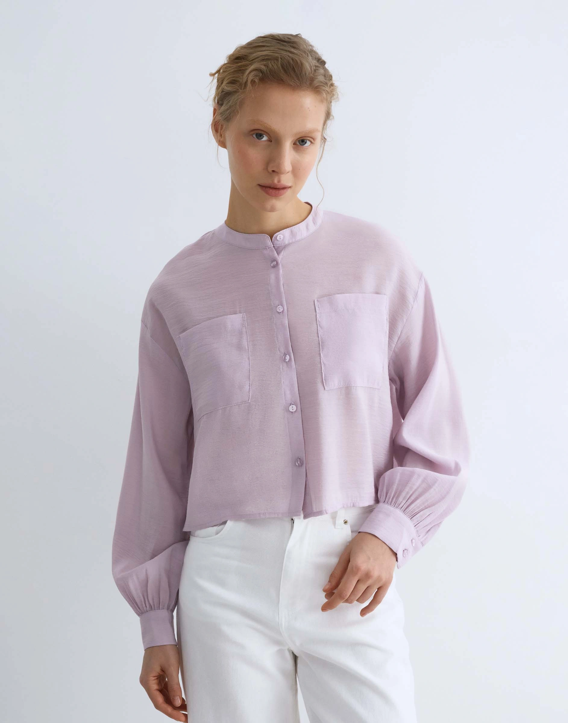 Сиреневая рубашка Loose с воротником мао и нагрудными карманами Gwt003433-3